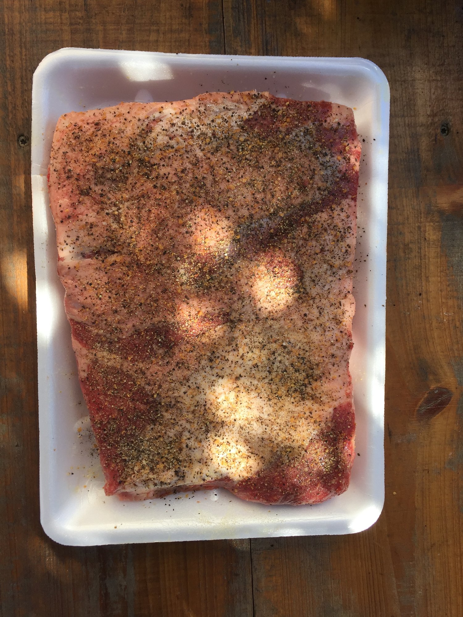 You were lucky to find those ribs uncut. Most butchers cut them up into individual ribs. I think they cook and taste better when left whole. One of my favorite cooks. Looking forward to more pictures.