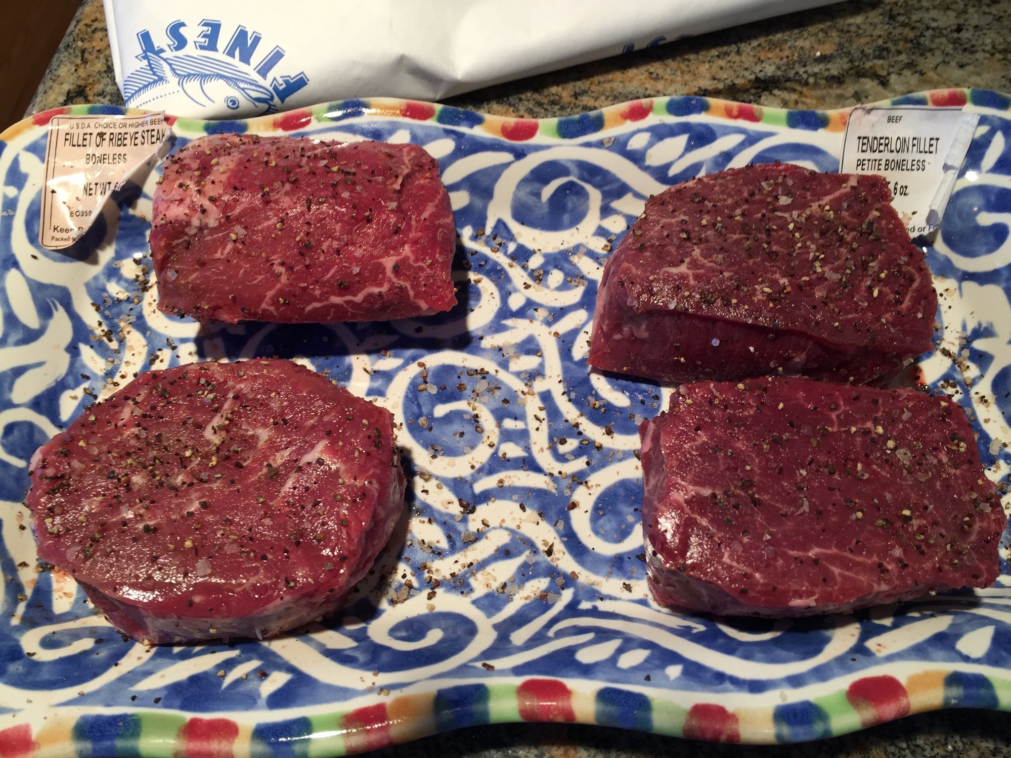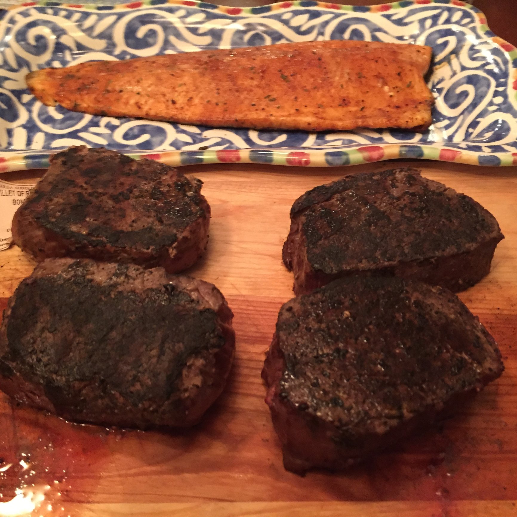 Reverse seared SRF Rib Eye and Tenderloin filets tonight for a family taste test and vote in this primary season. (Also cheffed up some Arctic char bc why not?)