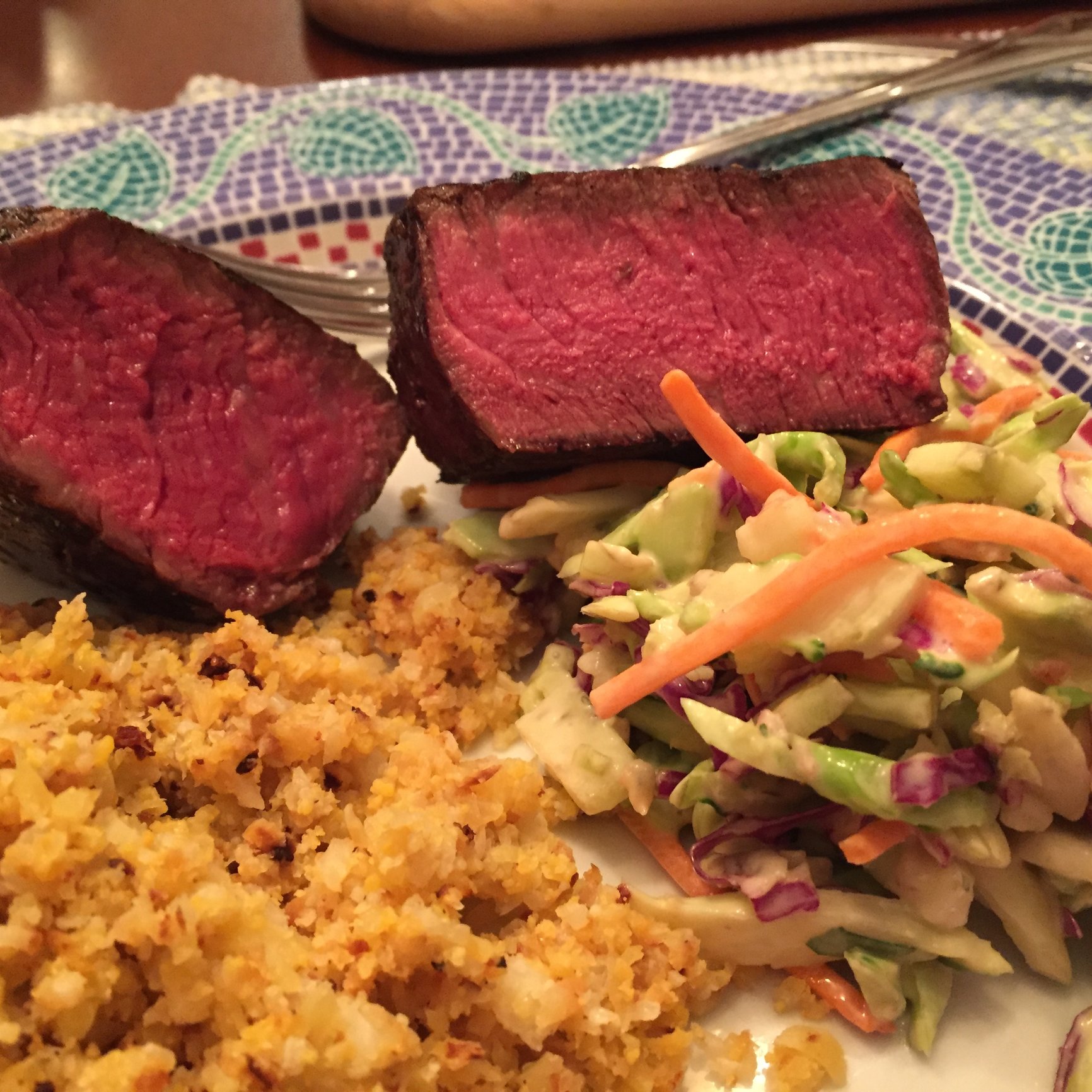 It was a total myoglobin-bath. No survivors. In a very close contest, the rib eye won out. But no one was kicking the tenderloin off the island. These SRF cuts are the real deal, Yo.