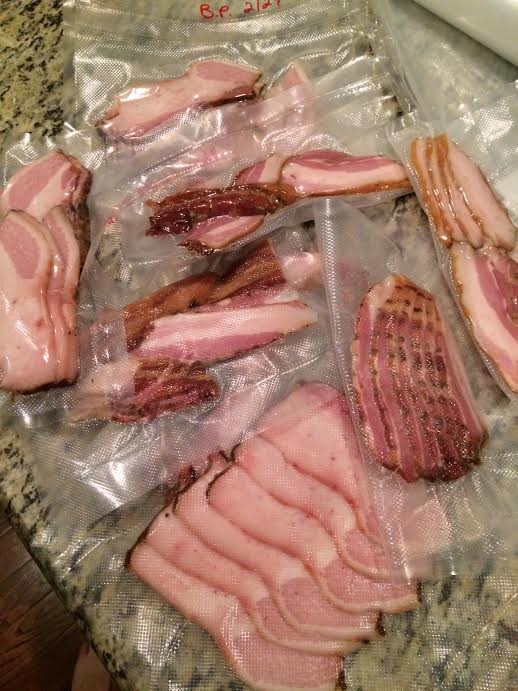 Ok, here is the final product. I haven't have too much time to taste test but first observation is there is less salt than normal store bought bacon. I would prefer more salt. I will have to do more taste testing this weekend!
