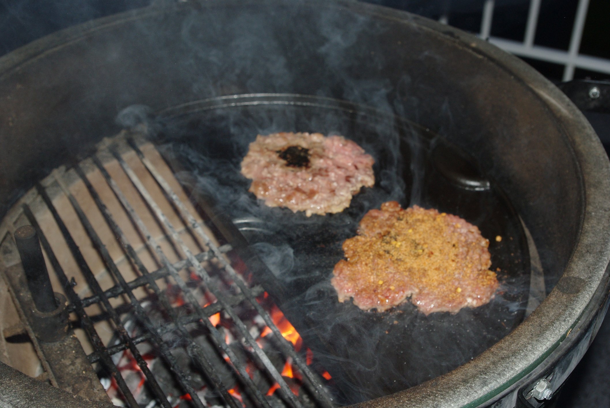 1) I did it on a CI griddle on my stove top. Next time, I'll use the egg because I'm still looking at the smoke all over the house!
