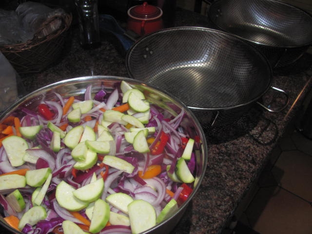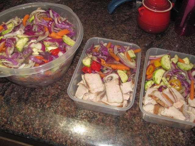 Haven't shown this in a long time.  Veggies for the week.  One of my favorite BGE stories is my younger daughter telling me that she reheated some of the Egged veggies at work, and people came around asking who had BBQ.