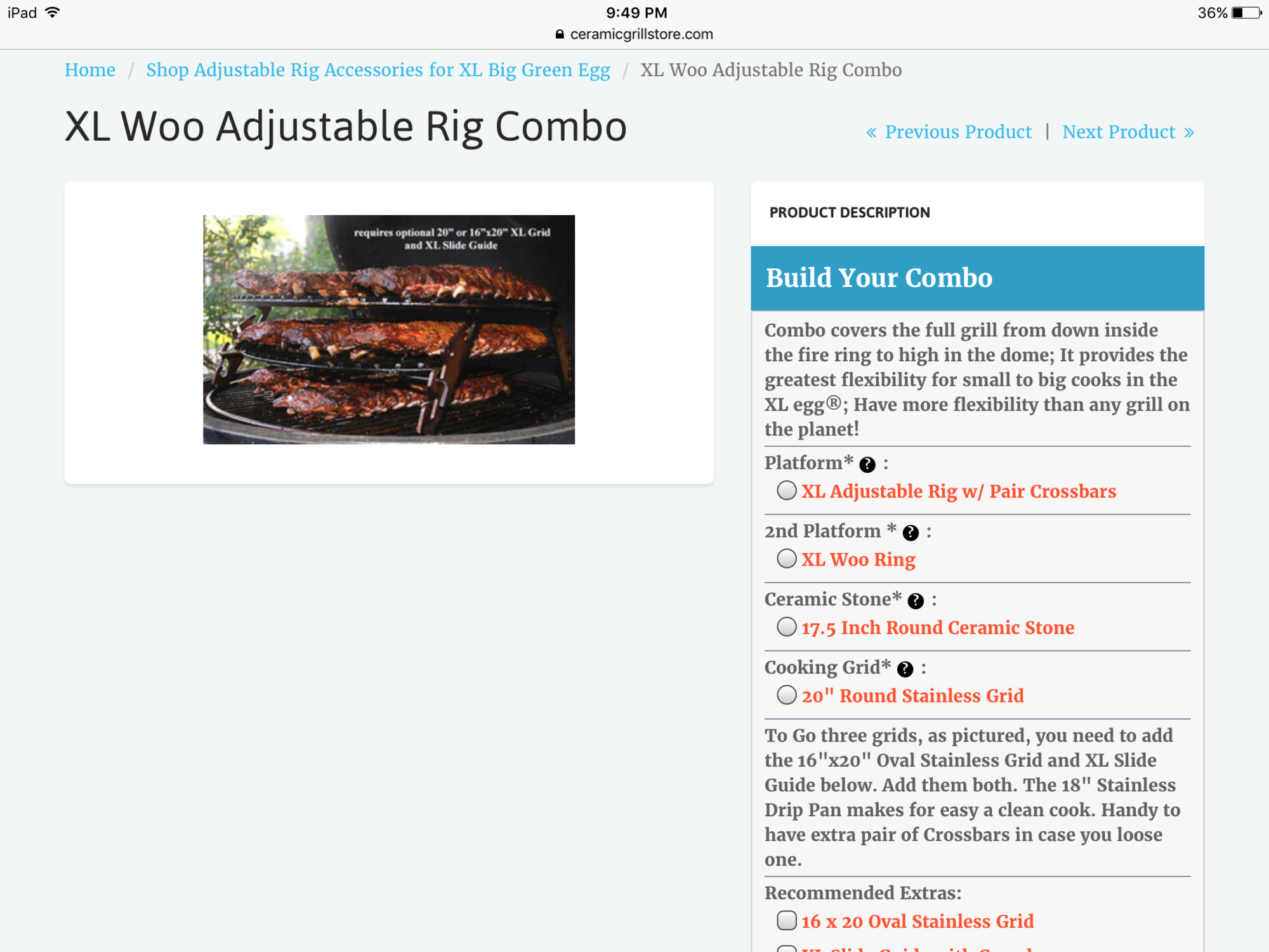 I have a large with the AR, the grid extender, the oval stone, the sliding D grate, and 2 oval grates. This allows me a ton of flexibility. I can cook on one level at gasket level, or higher, I can cook 4 whole slabs of spare ribs at one time, or I can cook spare ribs on the bottom grate and chicken or something else on the sliding D grate. The only thing the Woo will buy me is the ability to cook on 3 levels I think. Someone correct me if I am wrong.