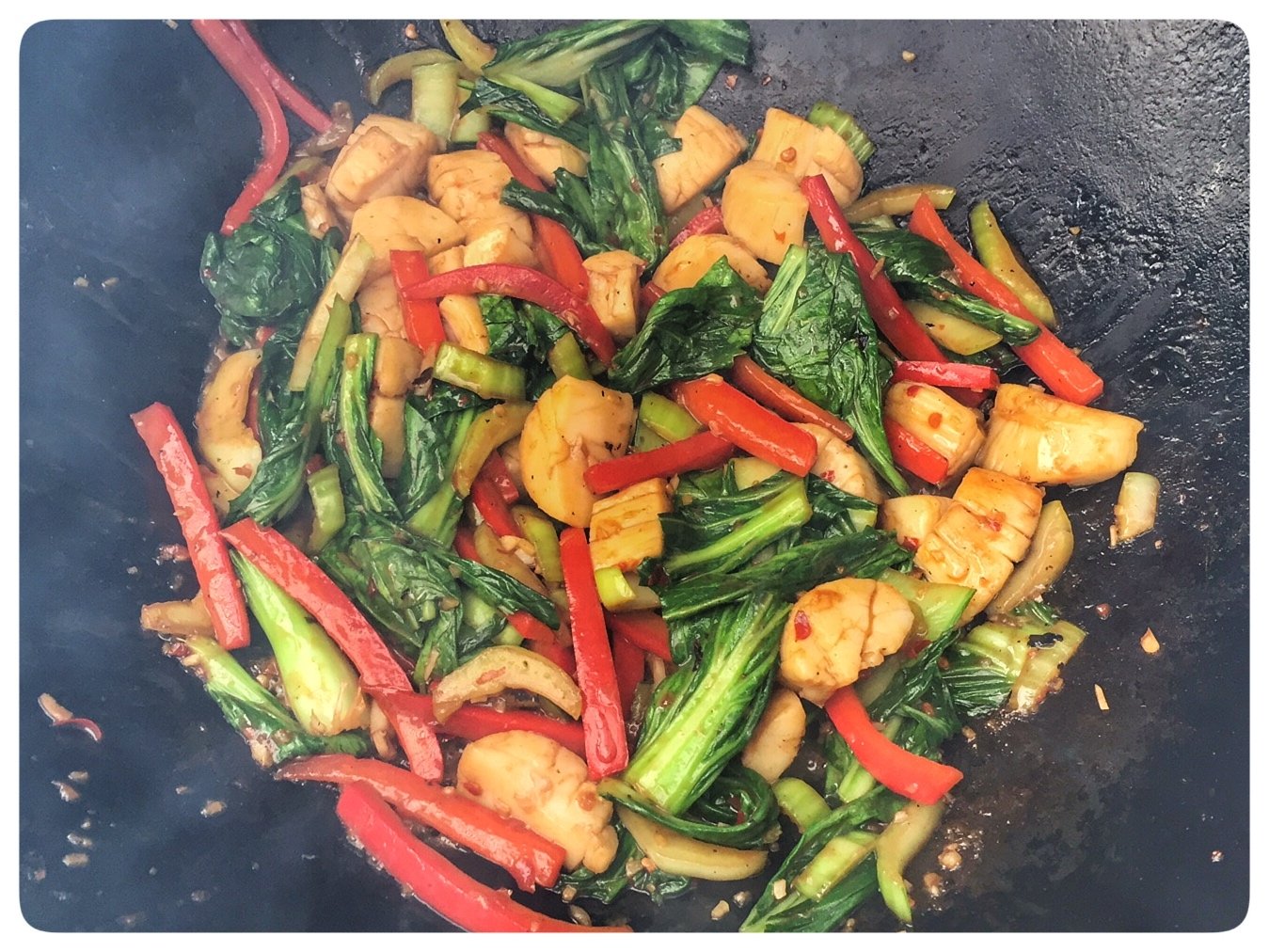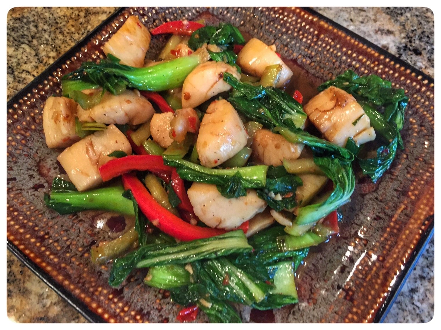 Stir Fried Chili Scallops and Bok Choy. 4 servings a total of $23.72.  No wonder I like to eat at home!!