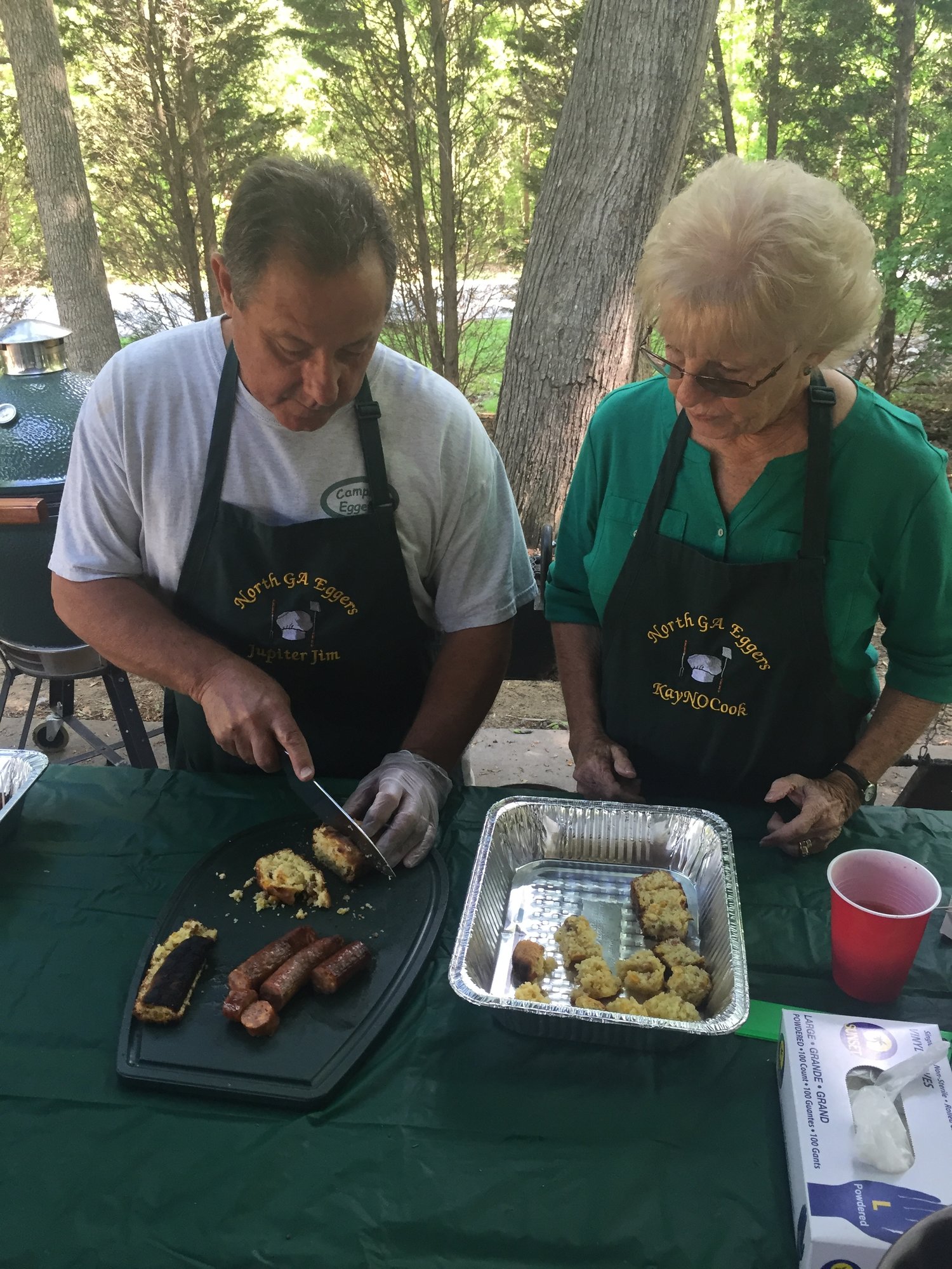 KayNoCook's and@JupiterJim serving up bacon and cheddar cornbread. Delicious!Sandy Springs & Dawsonville Ga -
