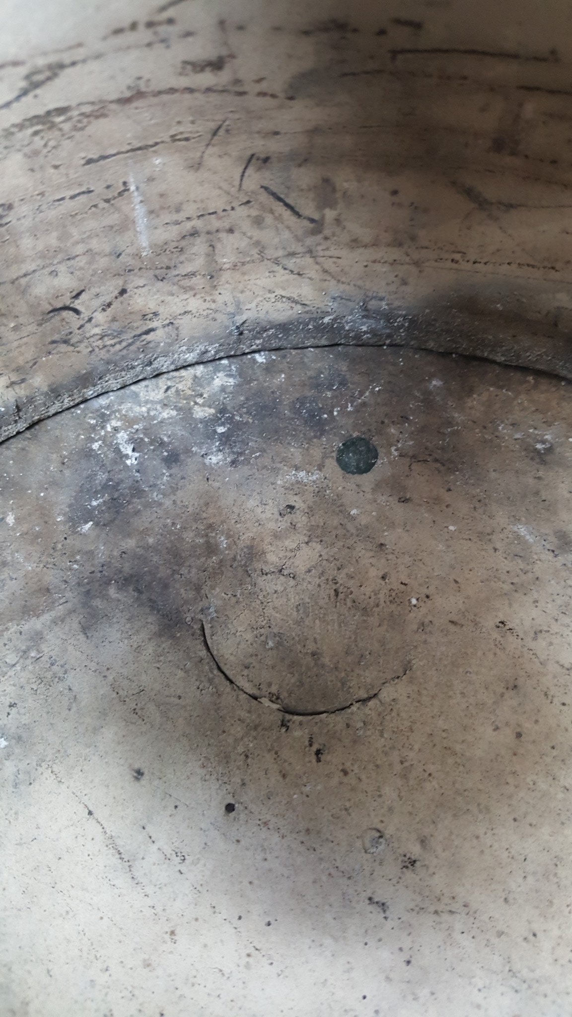 That is an interesting looking break in the bottom of the base (if I'm seeing it correctly) Almost looks like the base was drilled out and filled - very circular "crack".
