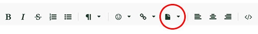 I just click on that and drag the file into the text wherever I want it.  Works like a charm.