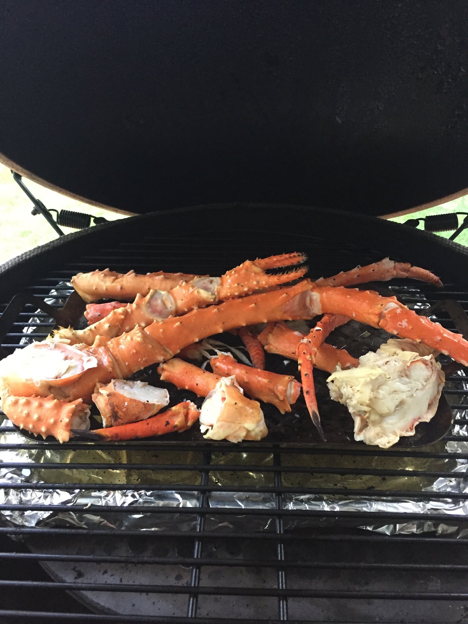 King Crab from RD heating up on the XL. With potatoes and corn on the Cob in the oven.