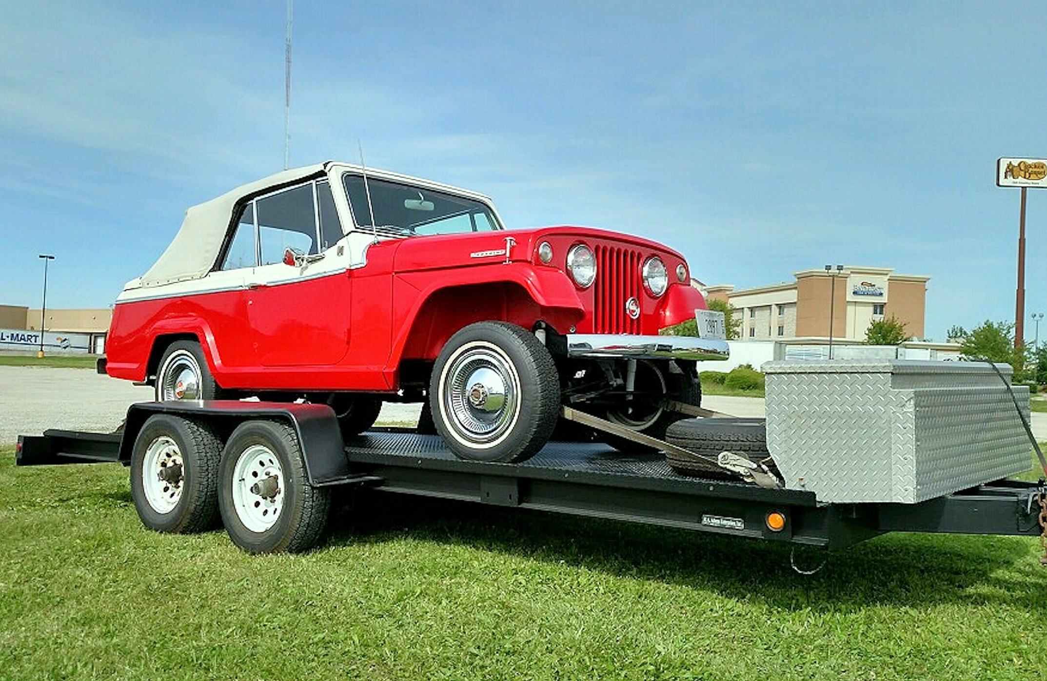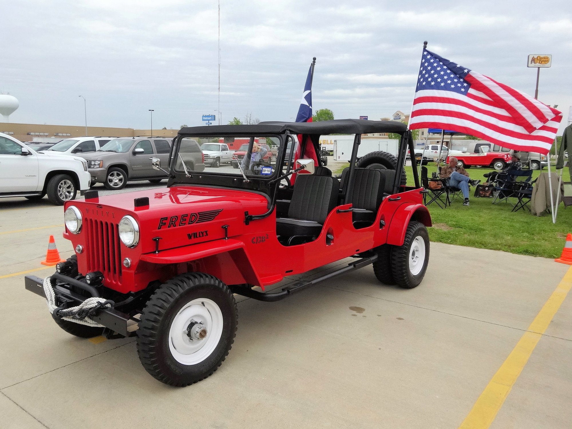And yes, that's a Texas flag on the right rear corner. He's a true Texan ... notice the dual rear tires? If you look under the USA flag you'll see a red 1948 Jeepster with the top down.