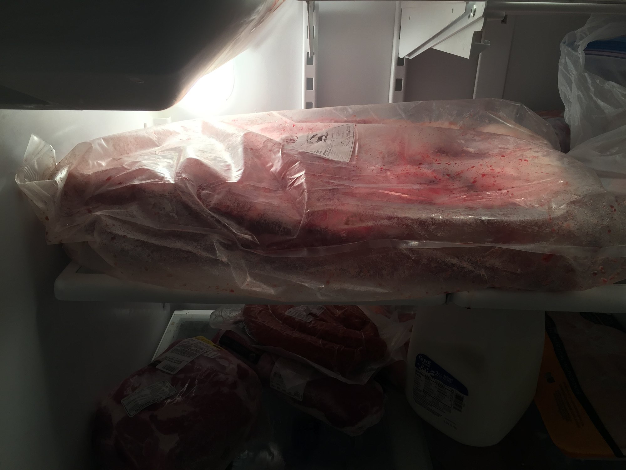 I got the monster brisket. Holy cow is it impressive in person. But, the cryovac is shot and it has thawed. My plan was to cook it July 10 at the river party. Any idea s in best way to hold it till then or do I need to cook it before? Should I take it out of the loose cryovac?XL, Small, Mini & Mini Max Green Egg, Shirley Fab Trailer, 6 gal and 2.5 gal Cajun Fryers, BlueStar 60" Range, 48" Lonestar Grillz Santa Maria, Alto Shaam 1200s, Gozney Dome, Gateway 55g Drum -