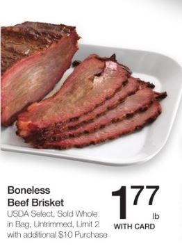 Kroger also has sales on. I may buy some of their ribs but the select brisket isn't that good.Gunnar said:With the sale price on brisket this weekend the purchase will be made for future burgers. The Randall's near us have the Choice Beef "butt" Tenderloin on sale for $9.99/lb. Picked up a 3 lb. package and netted 2 1/2 lbs. after trimming.