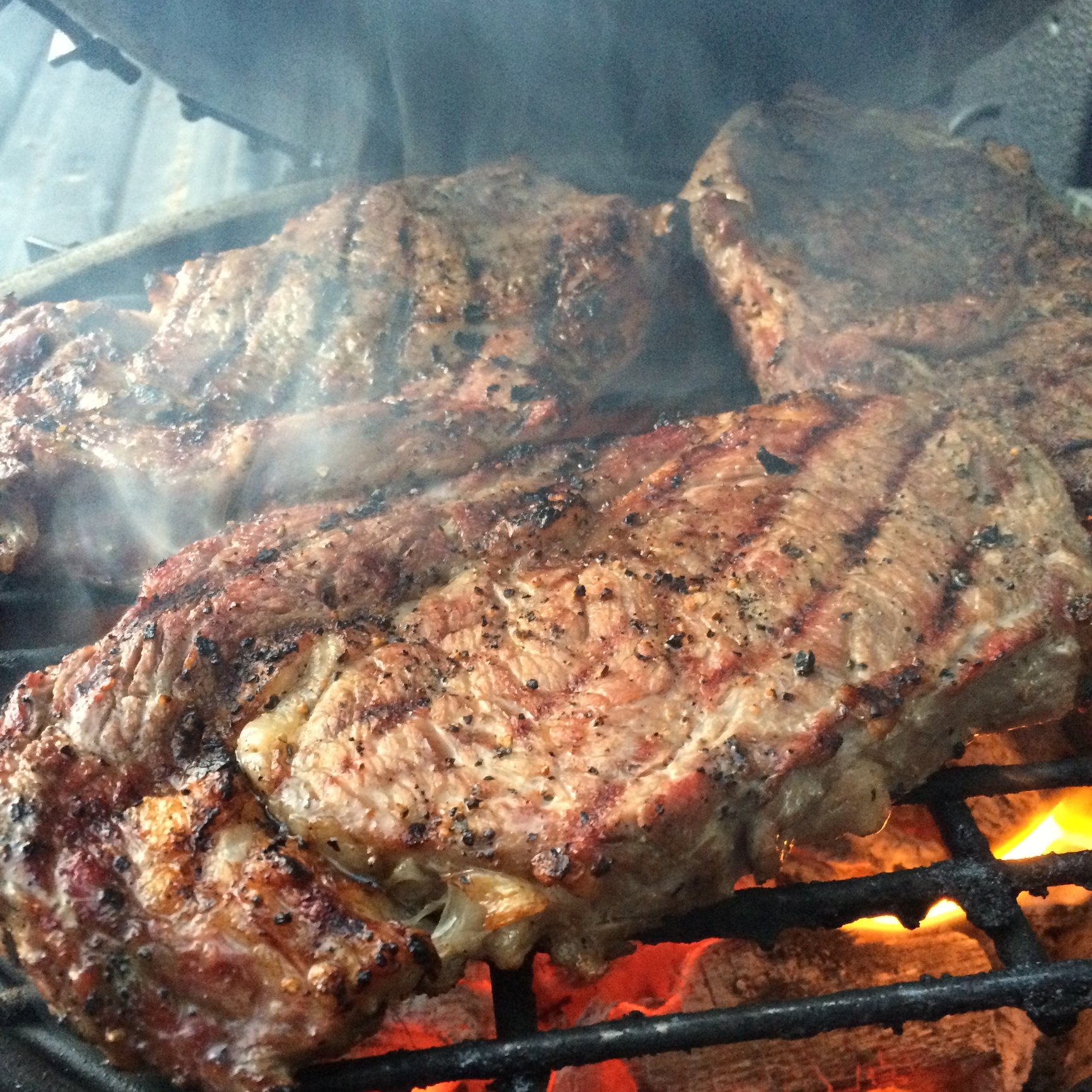 Steaks were fabulous. First round turned out perfect. First slowly brought up to temp on Foghorns travelling trash can cooker (he will elaborate on details). Then reverse seared on 20stone's MM.