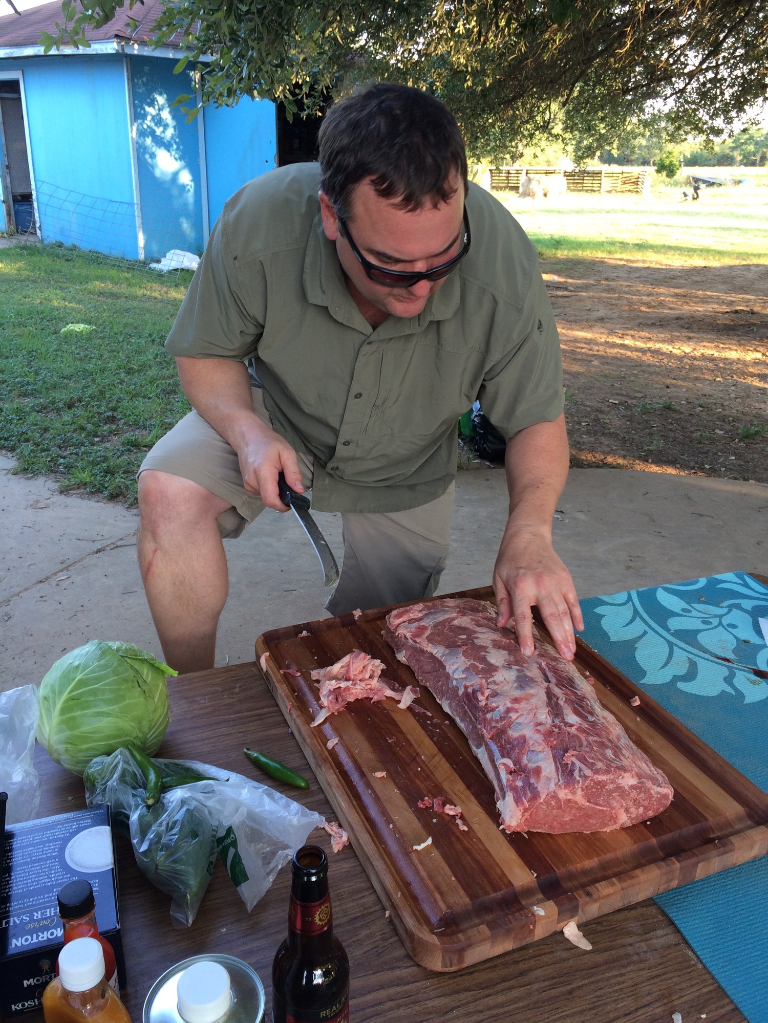 Actors: A massive Mangalitsa hog, dispatched to the big pig pen in the sky on 6.30.16, @20stone, @Foghorn, his son, @pigfisher, @The Cen-Tex Smoker, and myself.