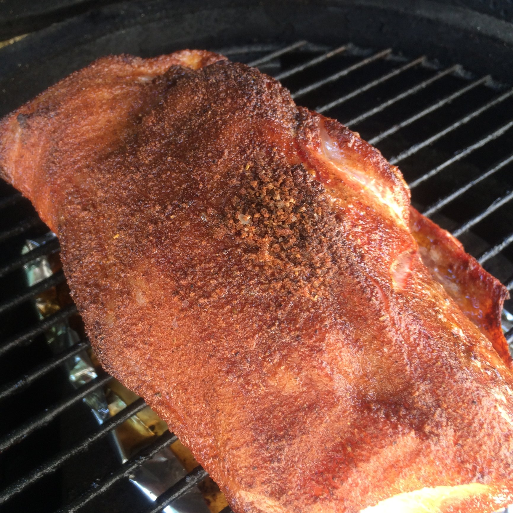 got up at 7 and lit the BGE. Crap. I needed to add new lump, and so it stunk for a while. i let it blow off the stink as much as possible while prepped the butt, and at 8 it went on with guests arriving at NOON. Needed to be done in four or five hours max. I cranked it to 375-400 and let it ride.