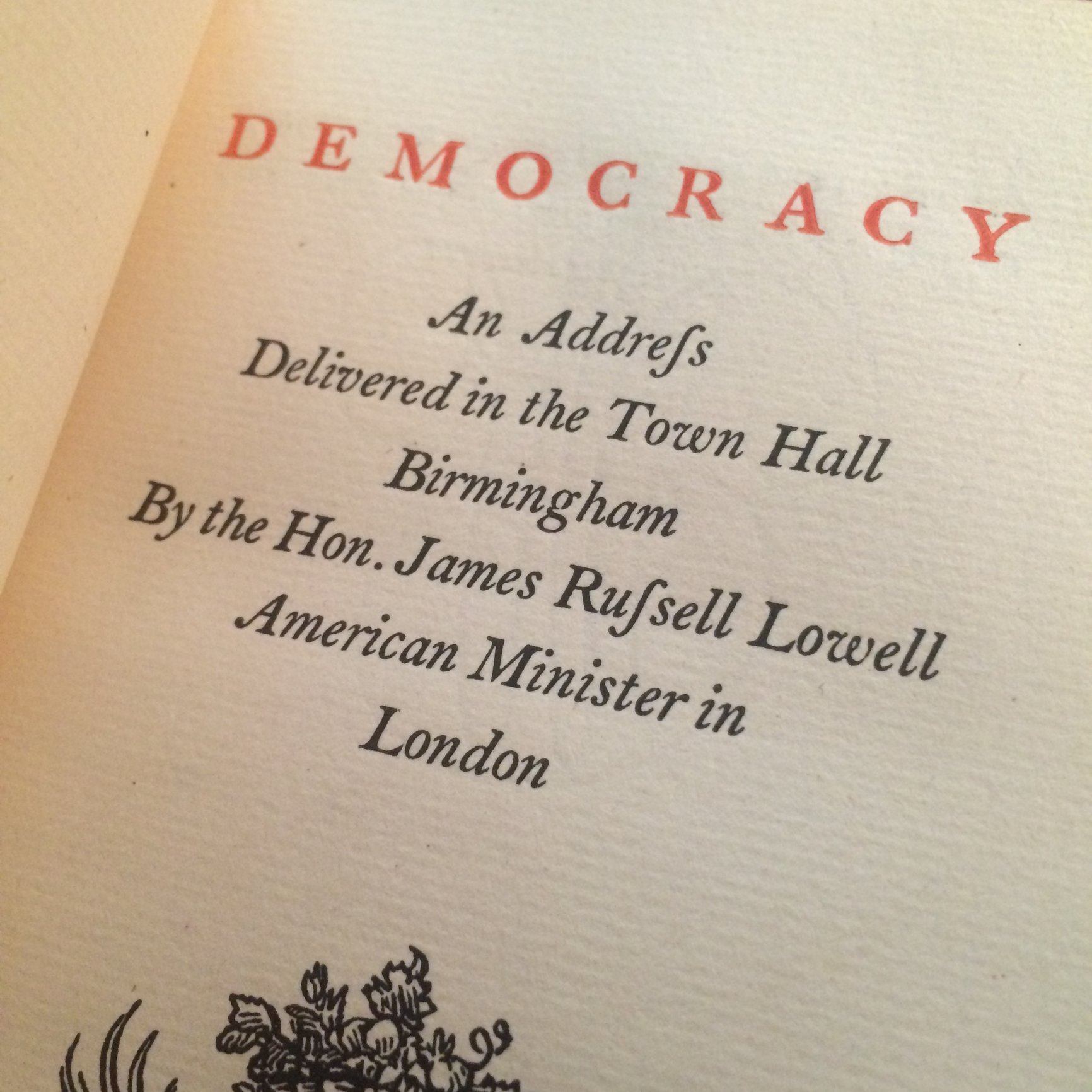 And out of left field (but relevant re the day) a Riverside Press edition of JRL's "Democracy ". Our local liberal rag (Boston Globe!) prints the Dec of Indy every Fourth, which I always read. But this has some relevance today too.