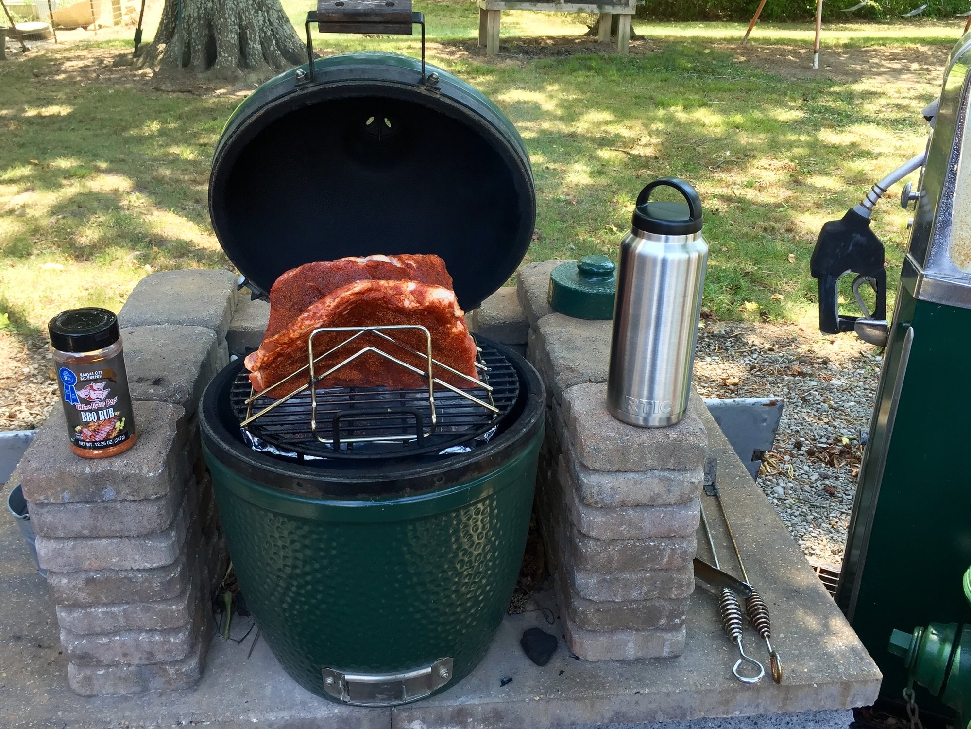 Let me know if you want anymore of the Country Bob's. It's a local Midwest thing. I think you can get the 3 Little Pigs rubs on line, they have a few other mixes as well. Very well known competition team "43 national barbeque championships, and over 600 individual awards including the Jack Daniel’s World Championship BBQ Sauce Championship, and the Grand Daddy of the all the American Royal in Kansas City Grand Championship 8 times."shtgunal3 said:Doing some St. Louis spares on the small with 3 Little Pigs rub that I got from @Tspud1 during the exchange this year. BTW Tspud1 I have found that I really like the Country Bob's mixed with a little Frank's Red Hot hot sauce. Thanks for that. Anyway, there is a new brewery in town. It is actually the only brewery in town. Our whole county has been dry dry since Prohibition until just a few years ago when the city went wet. The county is still dry. Anyway again, I went by the new brewery (Goat Island Brewery) to get my new RTIC growler filled up. The name of the brewery comes from an island on Lewis Smith Lake which is supposed to be one of the best bass fishing lakes in the South East that is here in our county. Anyway for the third time, they have a new IPA coming out that will be released next Friday and when I asked about it they went straight to the huge stainless tanks and poured me a glass to try at no charge. I thought that was cool to be one of the first to try it. And it was great! They are having a release party next Friday night and I plan to be in attendance. Here's some pics of the ribs and one of my little guy playing a huge as version of Jenga at the brewery.