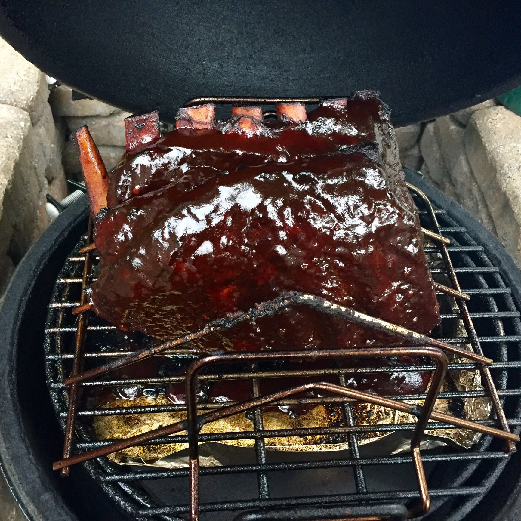 Ribs sauced with 3 Little Pigs also from Tspud1. And some green beans with homemade bacon chunks.