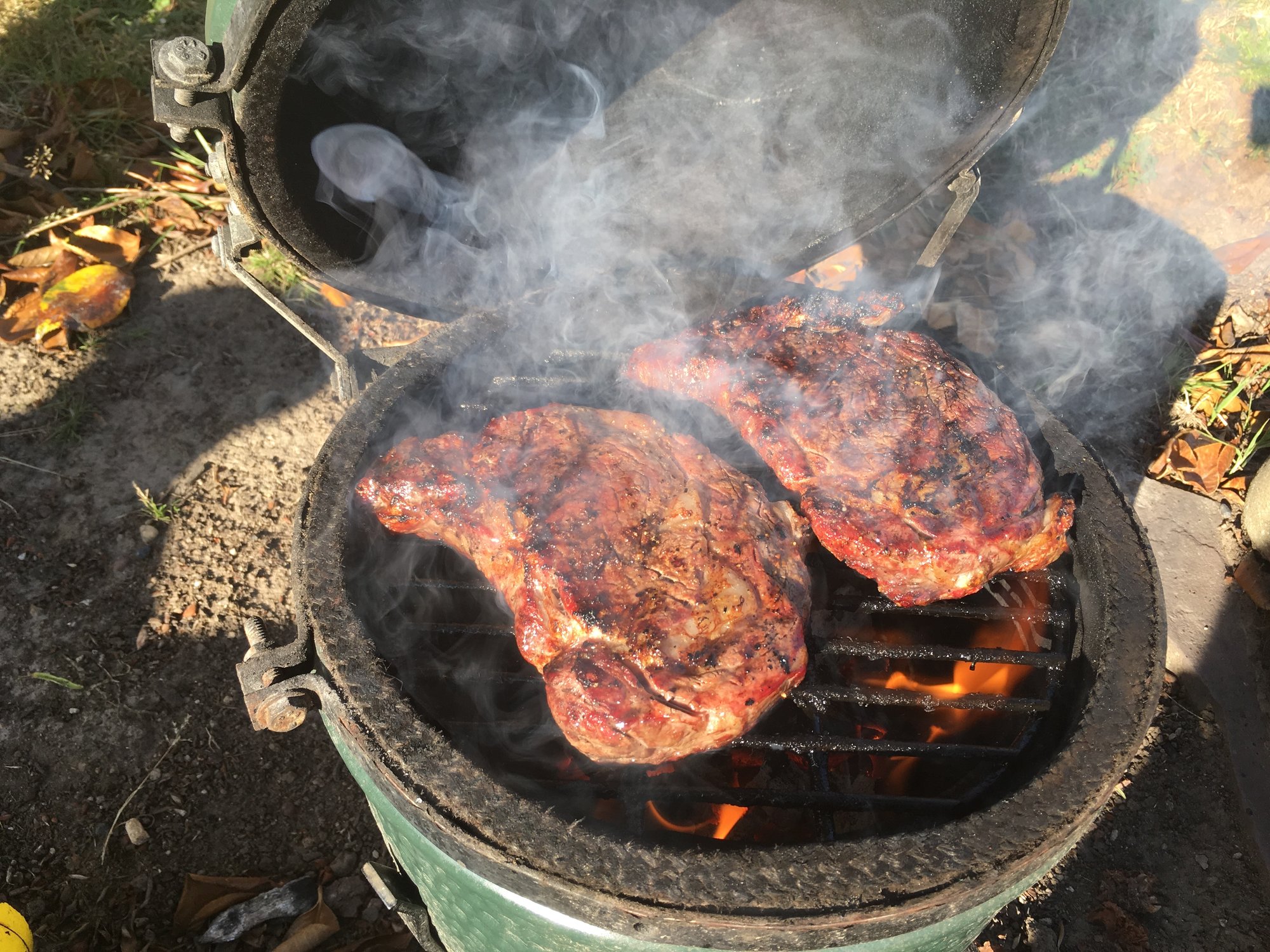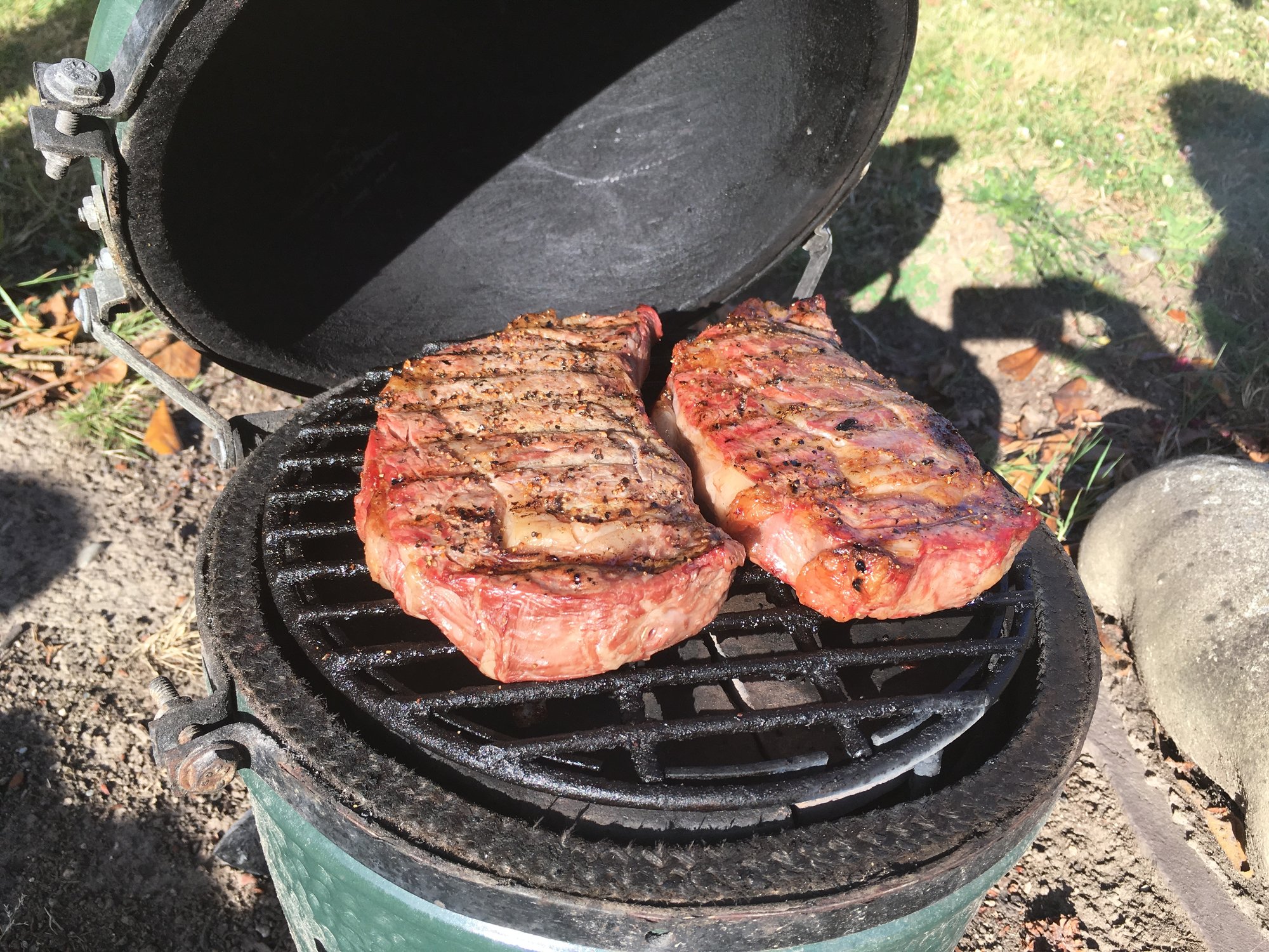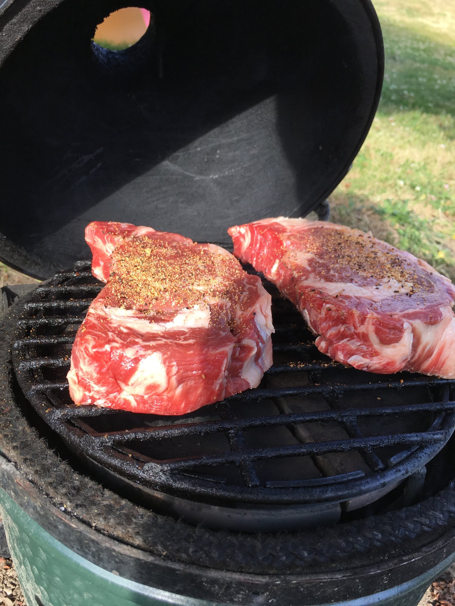 Those steaks look amazing!Wisconsin, lbge, MM, kab, pig tail flippers, bear claws, and more rubs than I will admit to.