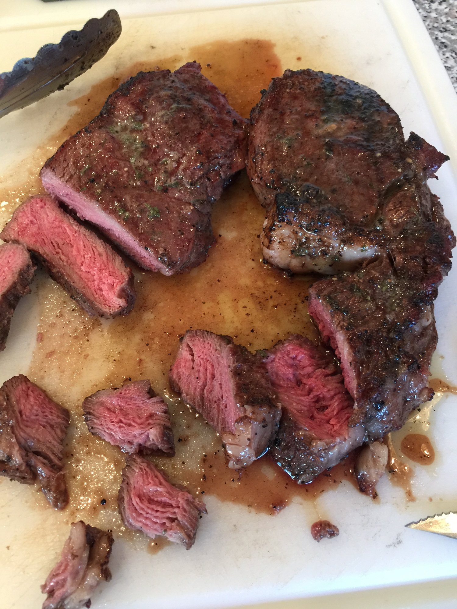 i made some ribeyes and followed the cook time on the Anova app of 1 hour at 130* for medium rare. It seemed a little closer to medium after the sear. One was seasoned with kosher salt and pepper and the other had Holy Cow. Both had a pad of homemade garlic butter after the cook. I enjoyed it but the wife seemed to miss the smoky flavor of the reverse sear. Kind of agree with her.
