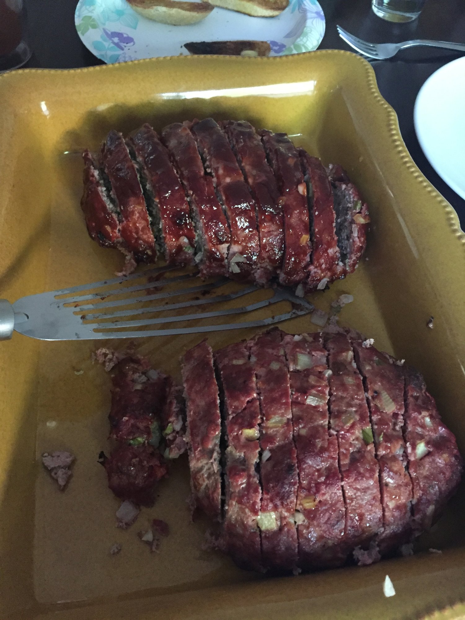 This area doesn't understand meatloaf. They use just beef. That is a beef loaf.