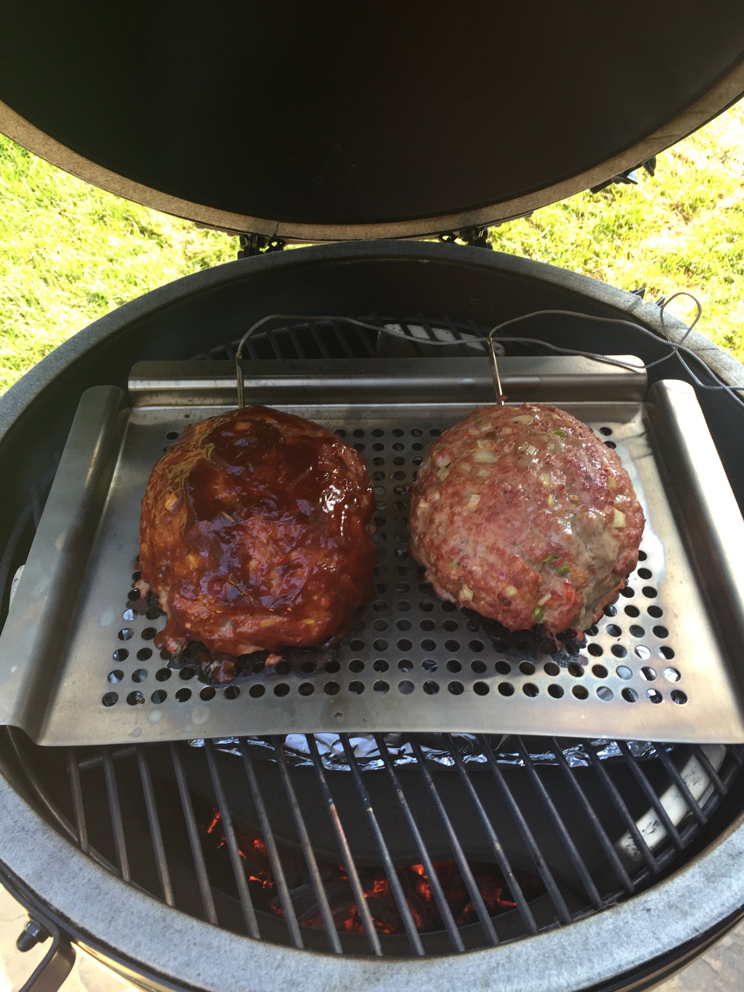 First meatloaf on the LBGE and damn that was good!!! Cooked at 350 until internal temp hit 160. Left one plain no sauce and the other topped with Sweet Baby Ray's for the last 30 minutes.