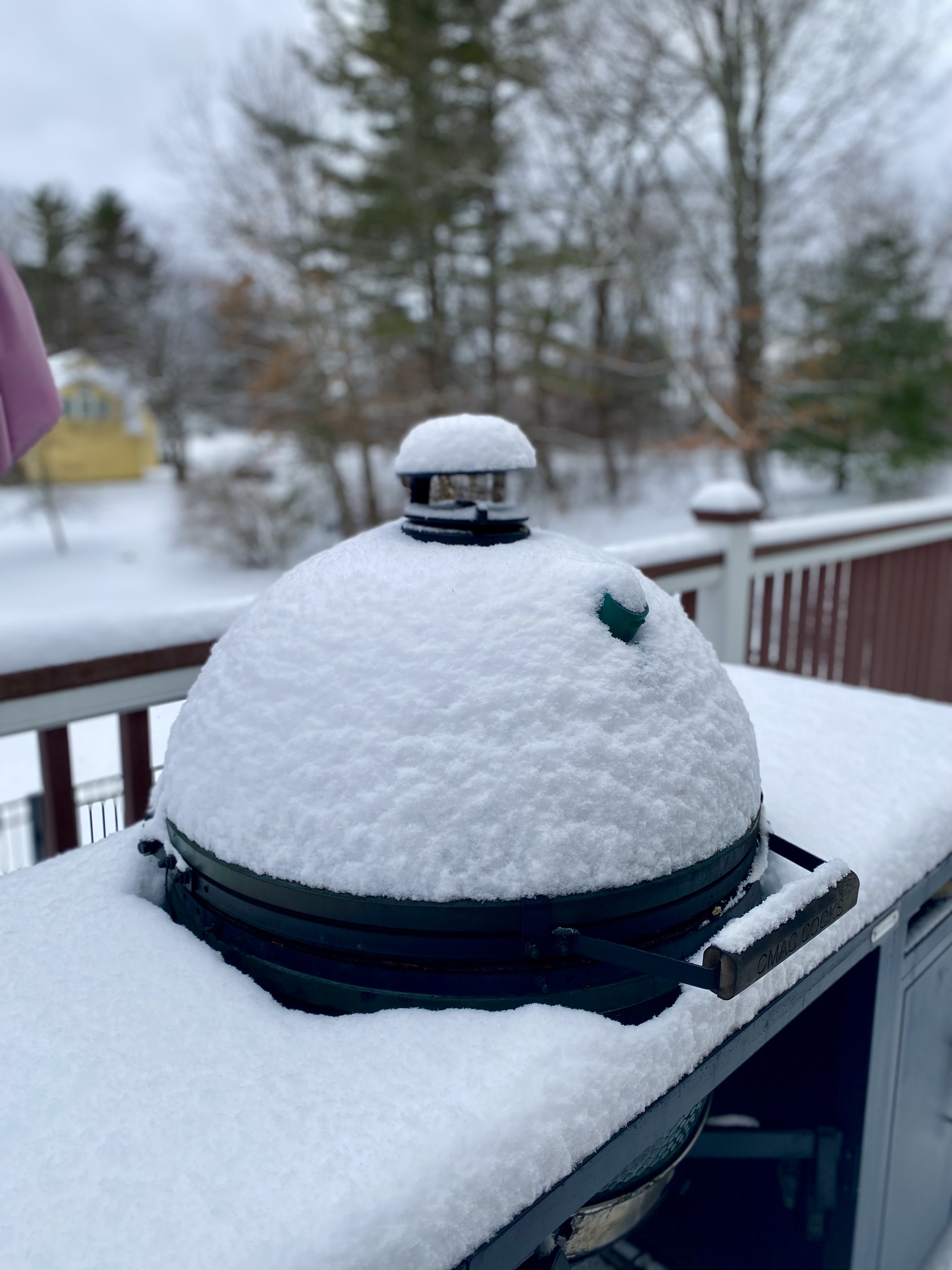 I've cooked in every season and the weather that comes with them here in KY....no wind, rain, sleet, snow, or sunshine has halted the BGE yet !!!!Donnie Dawes - RNNL8 BBQ - Carrollton, KY