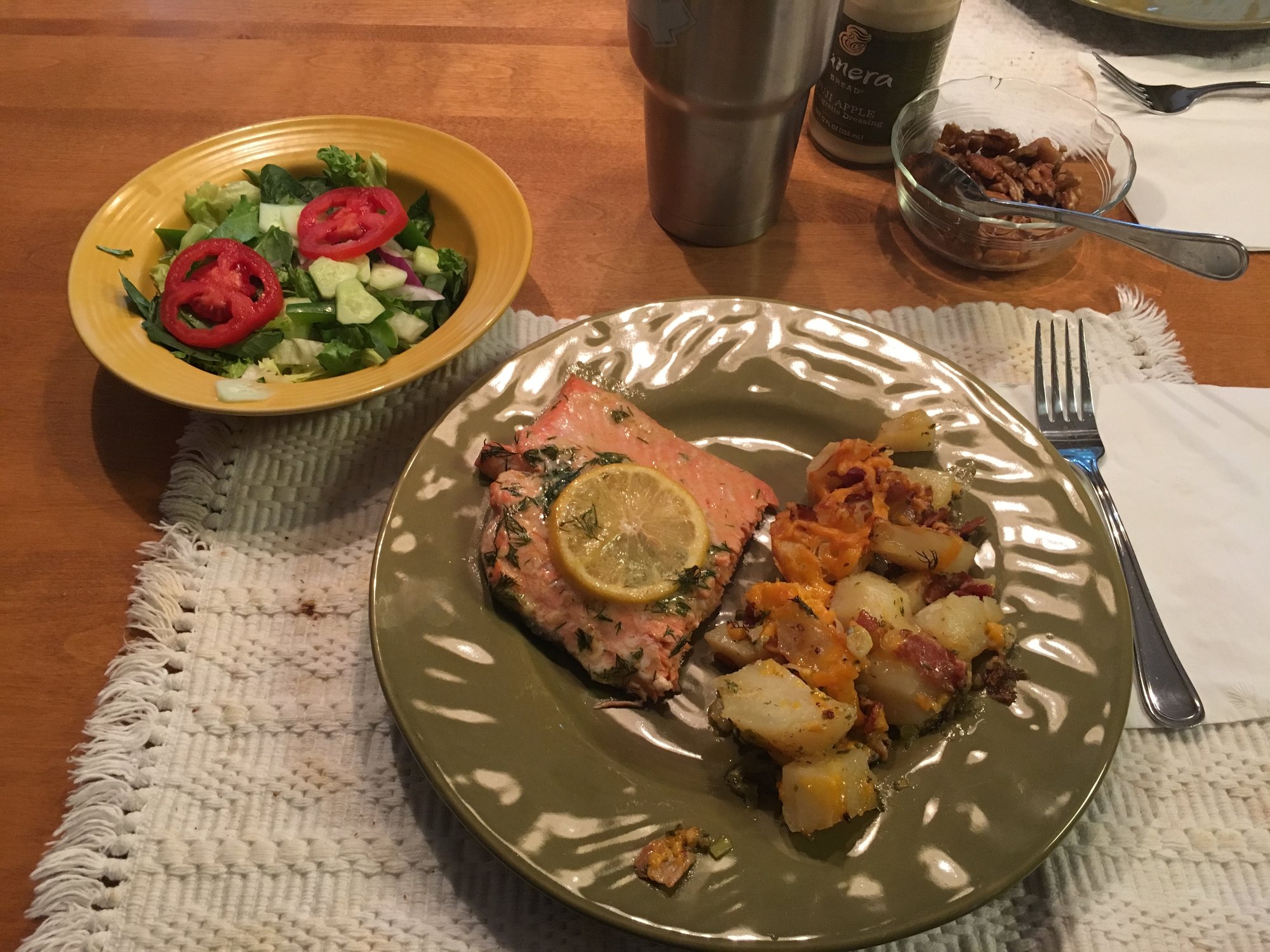 Marinated in a lemon dill mustard sauce. Also egged some of @tarheelmatt special potatoes.. So dang good...  Thanks for looking