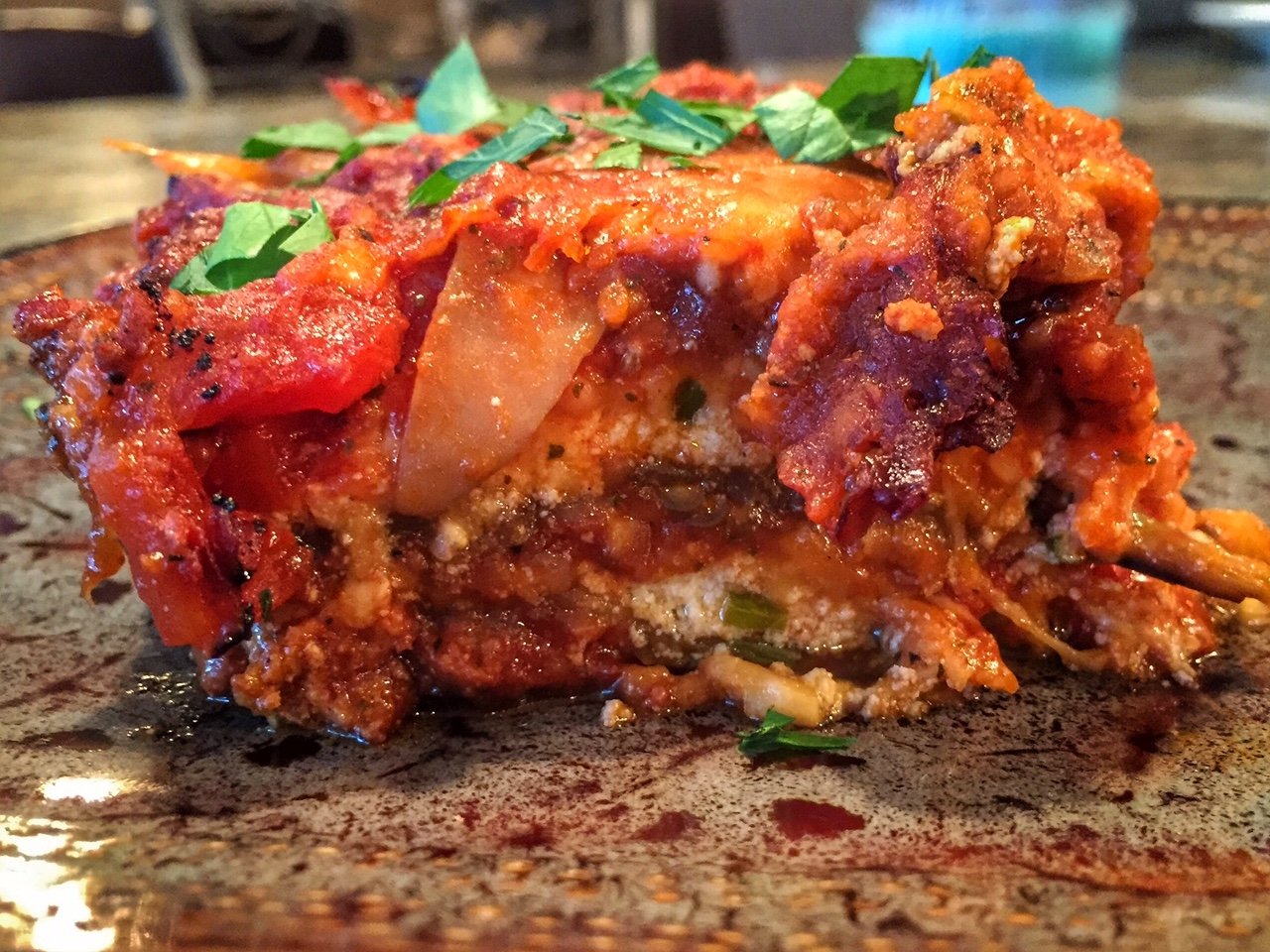 Made the normal lasagna layers with sauce, eggplant, ricotta, moz and parm. Then on the large at 400° indirect under foil for 1hr then uncovered for 30 mins