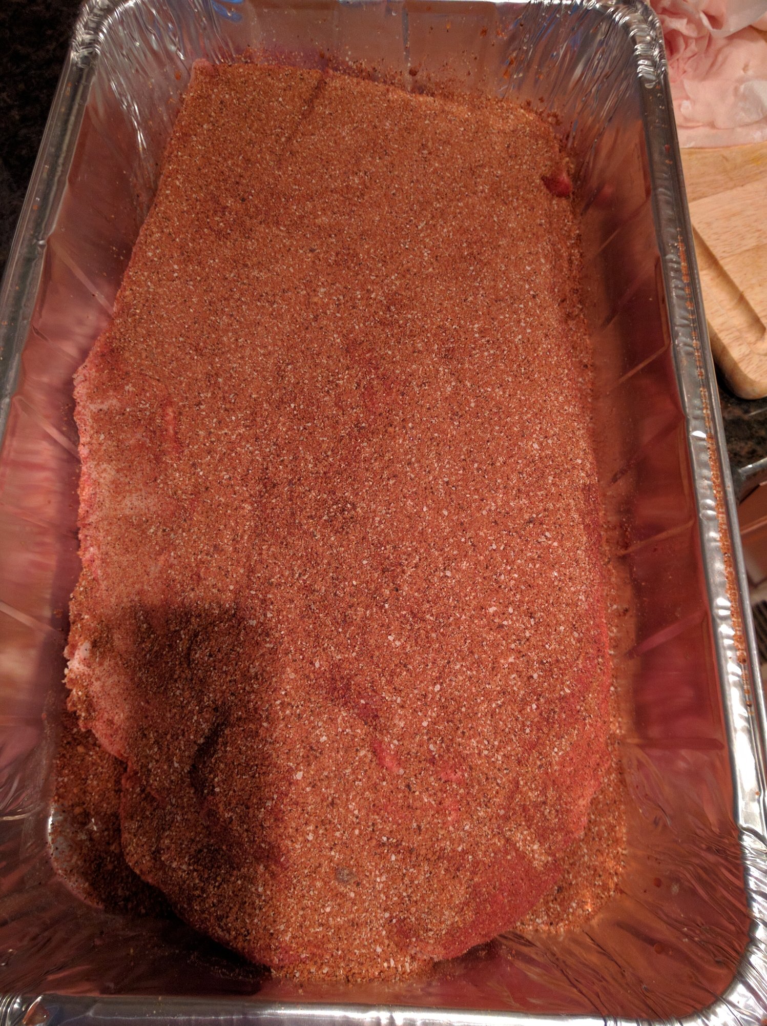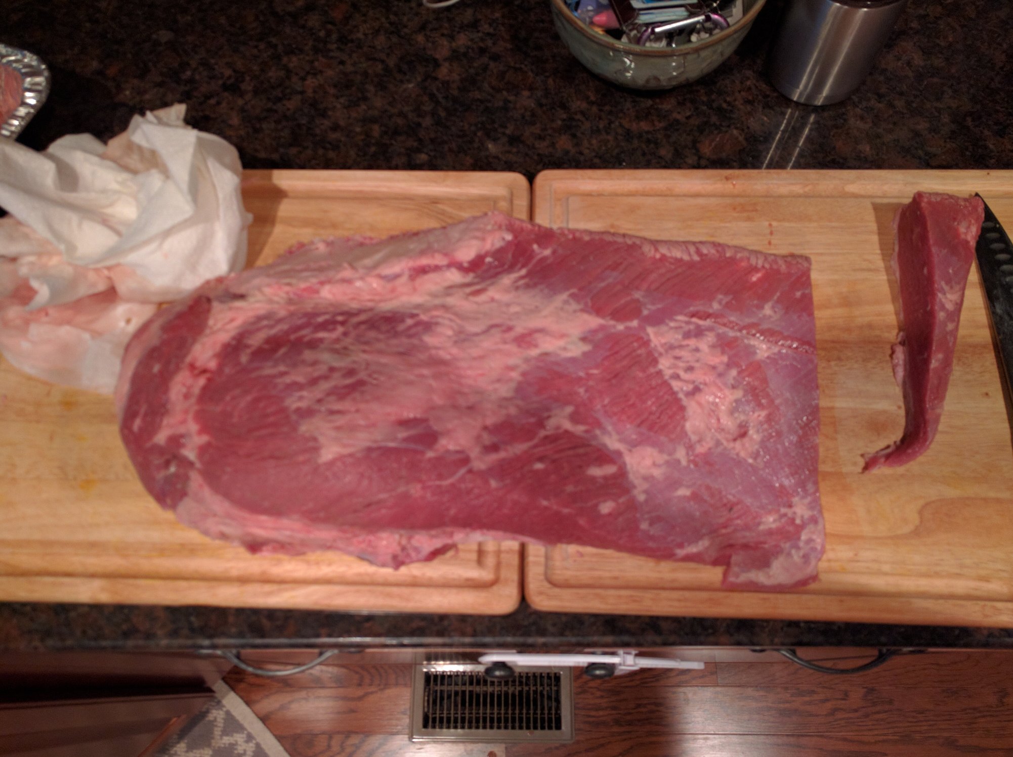 And of course my dad calls and has no plans for his wife's birthday so I step up. Brisky for the step mom coming up. Pretty nervous cause this woman can cook some fantastic restaurant quality food. First time I've cooked for her and they just returned state side after 6 years. My pops took a gig in Abu Dhabi. Anywho, here's the start of the cook. Many finishing and slicing picks if it's worth a damn. Pressures on. Made my injection for juicy reassurance.
