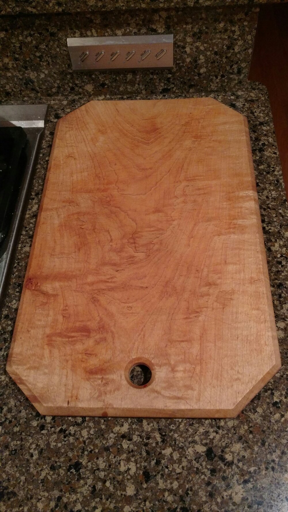 A tiger maple board my buddy from work gave us for a wedding present 2005. Handmade by him and his son, might be the only present besides the wine glasses still in use