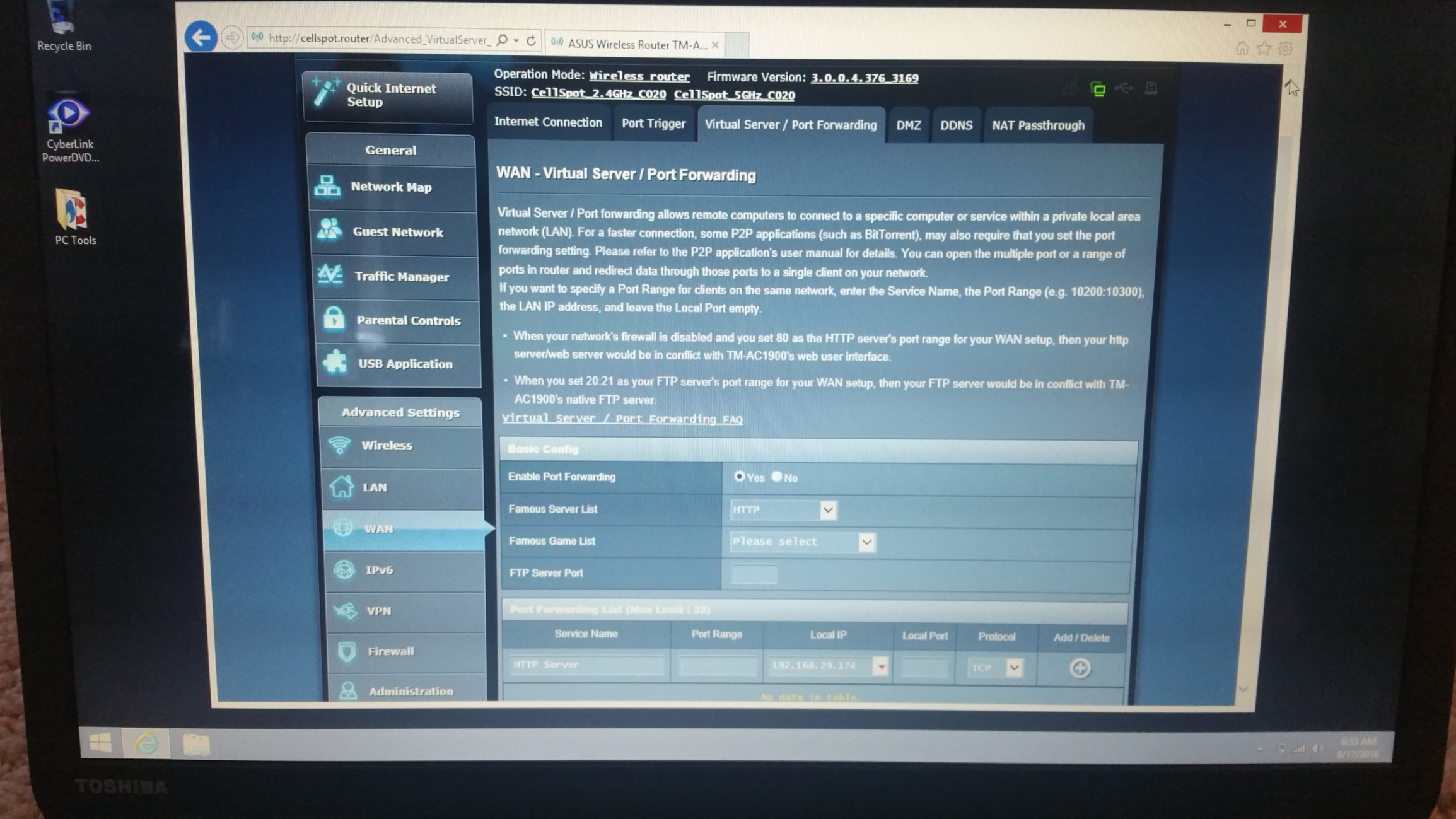 3. Setup the port forwarding on router