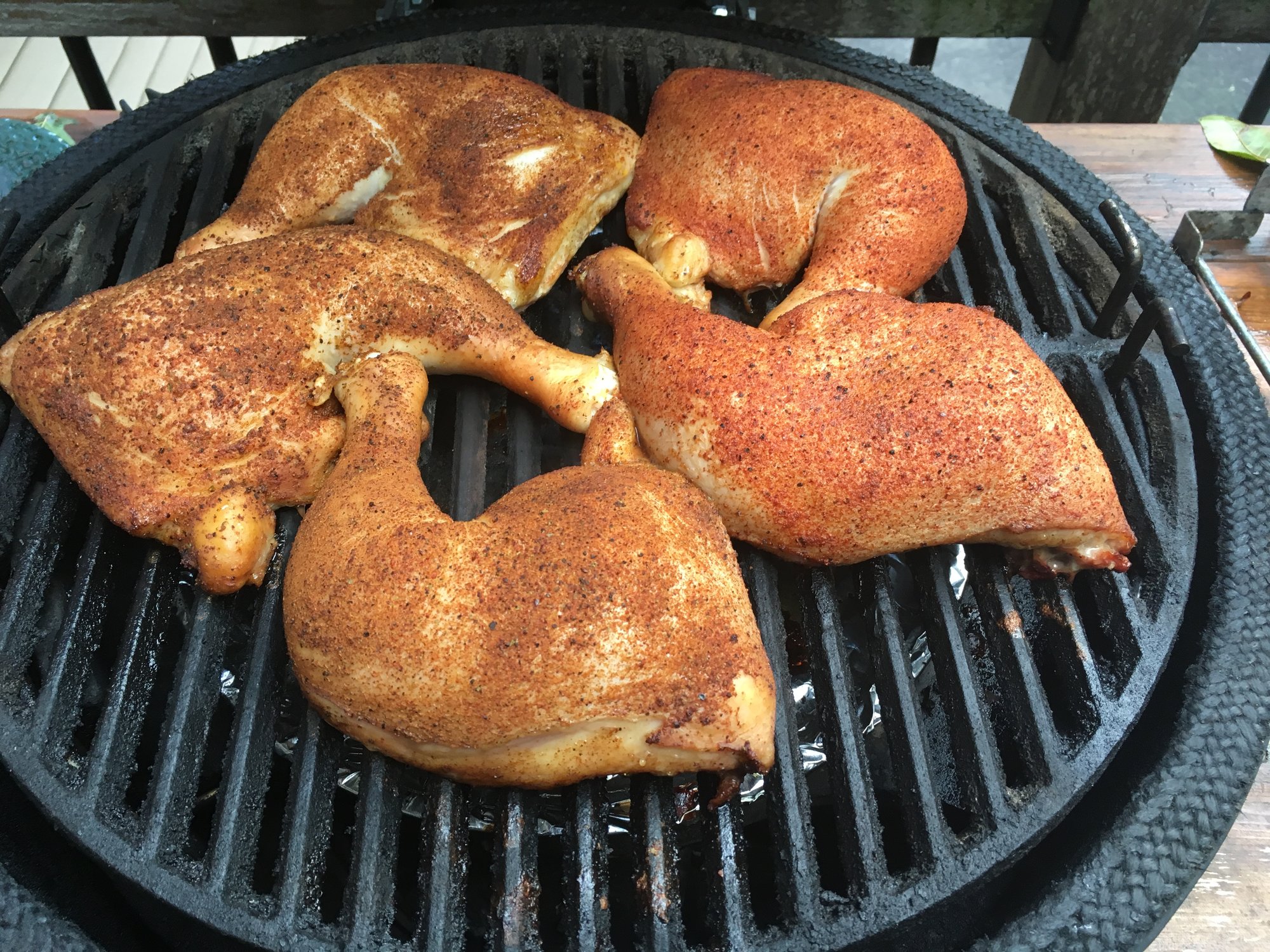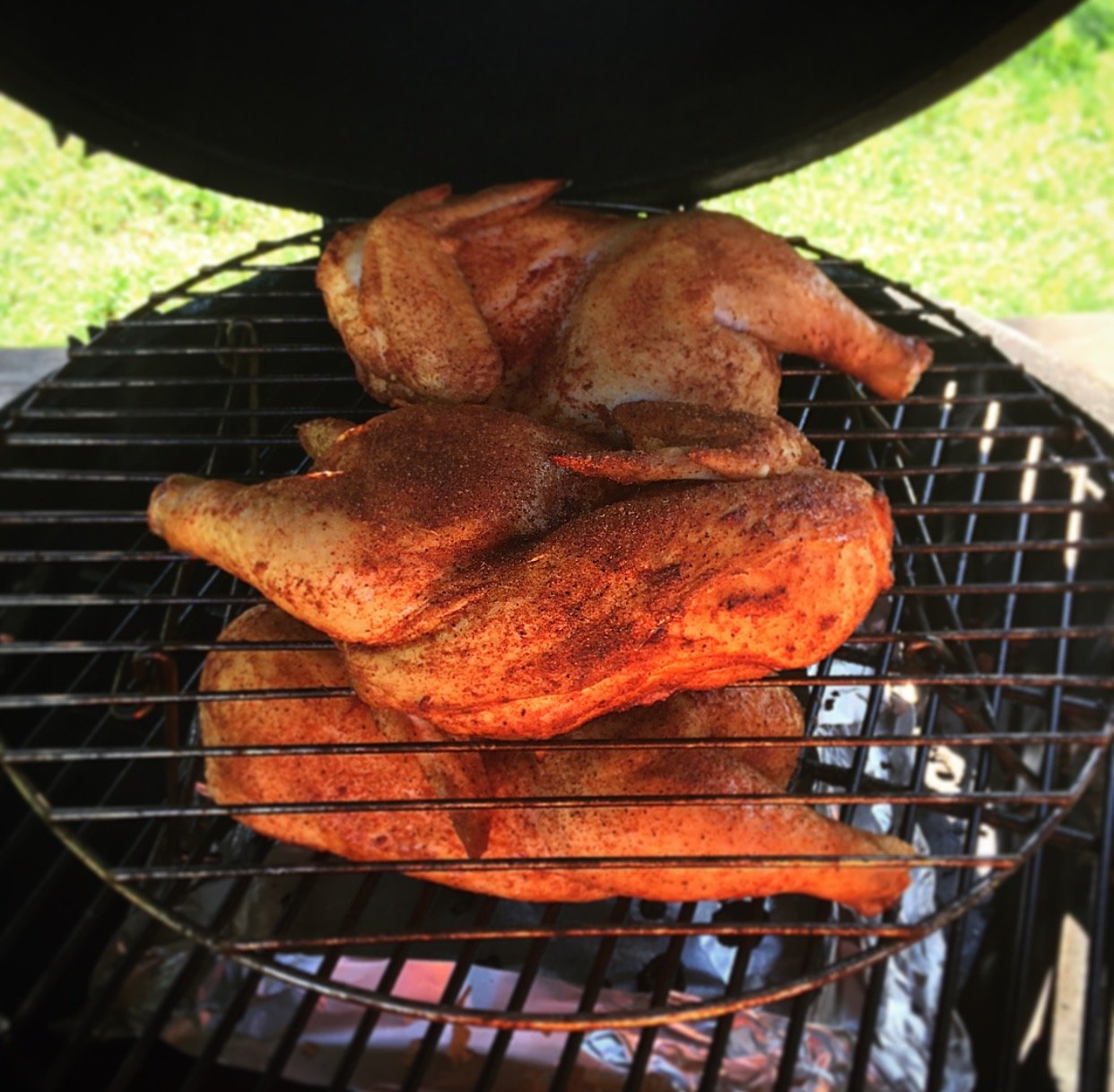 Working on some olive smoked quarters for dinner. Thanks for the inspiration @Dyal_SC. I've had some in my stash for 4 years. Never knew what to do with it. Seasoned with Yardbird and Everglades Chicken.