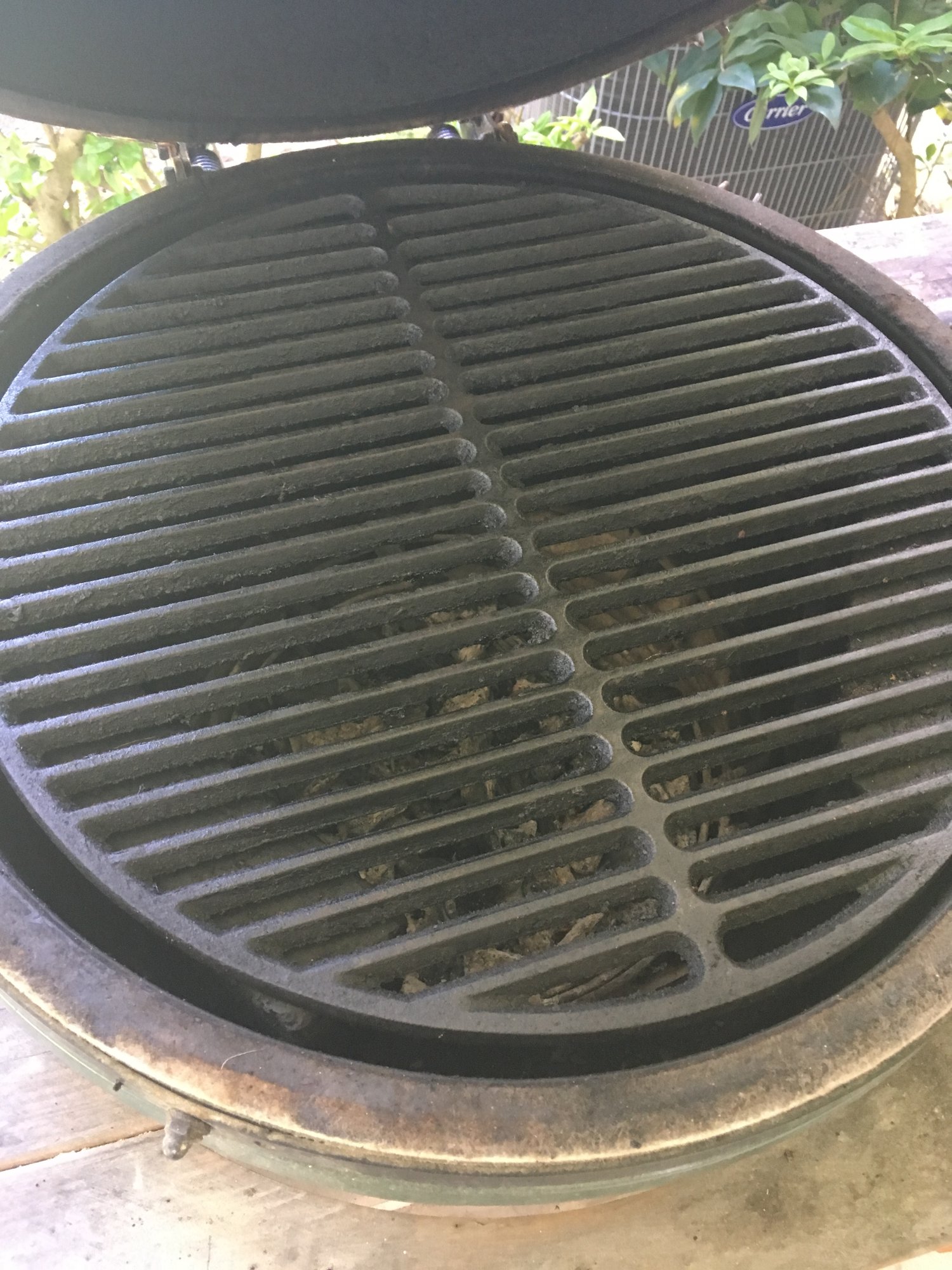 Terra cotta plant saucer instead of pizza stone for indirect. $7. It held up well at temps up to 600. My dog recently knocked it off the shelf and broke it.