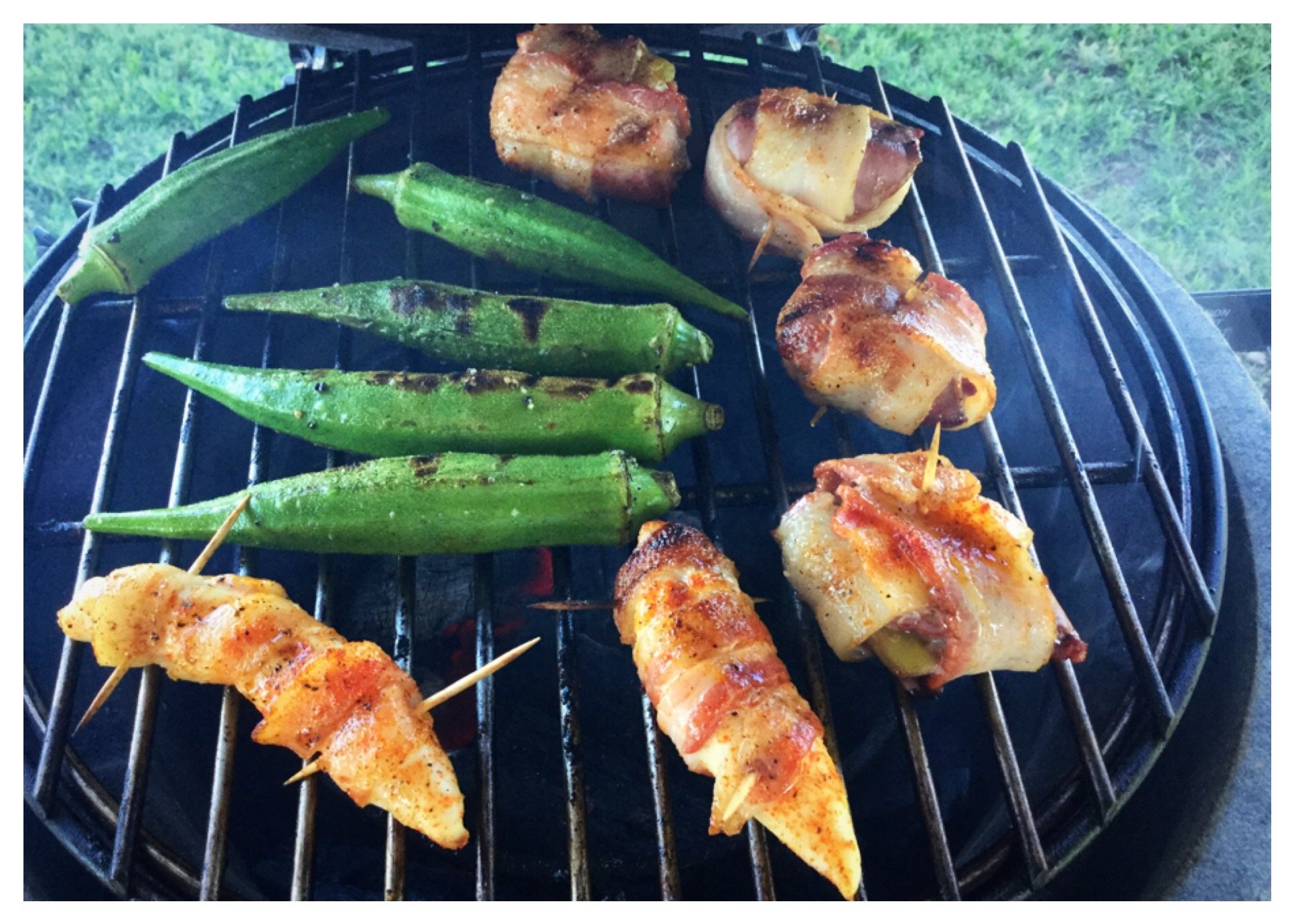 Dove poppers and grilled okra....winning. Dove is my absolute favorite.