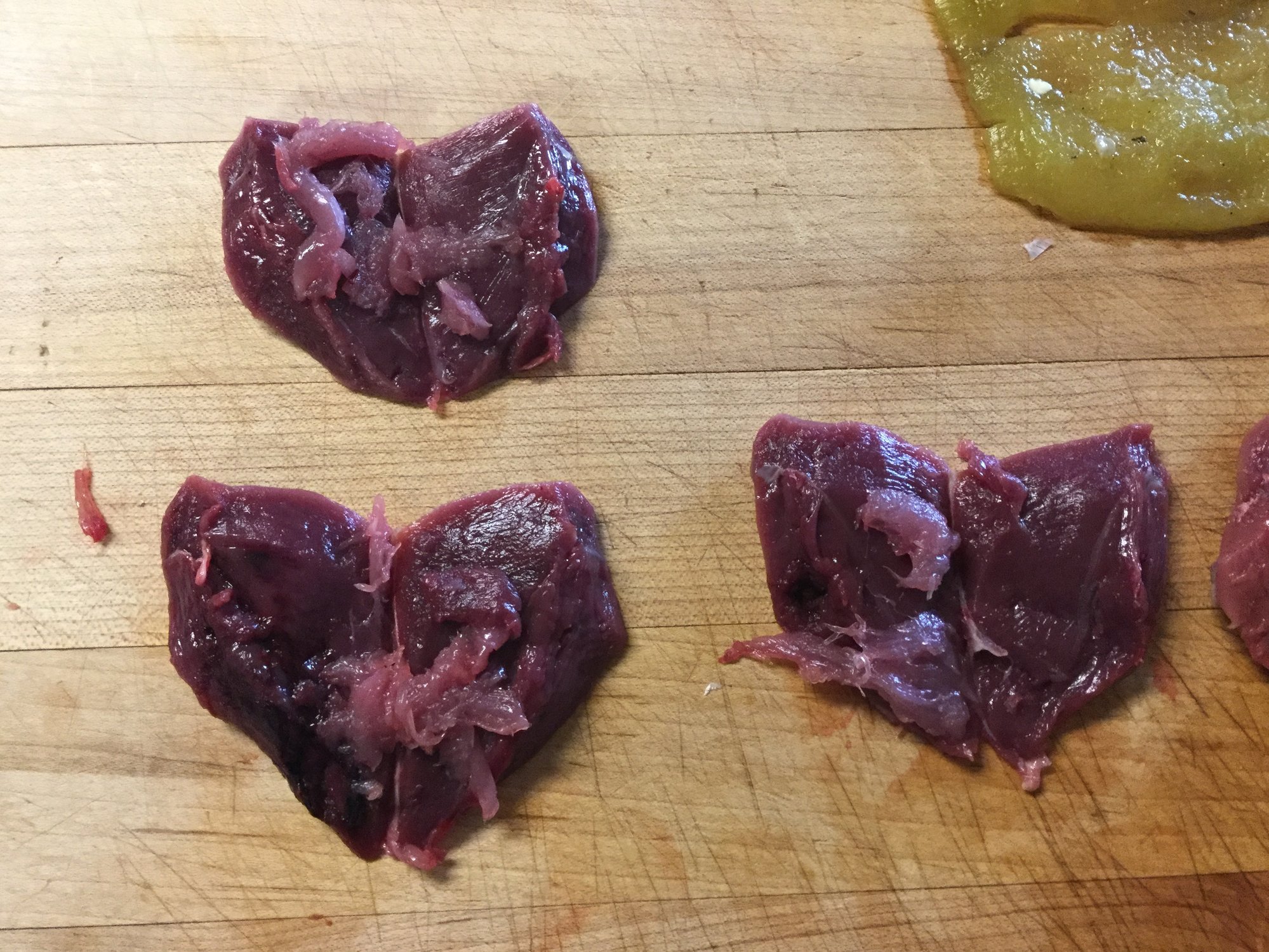 Breast the dove, add a slice of roasted green chile, and a dob of cream cheese.