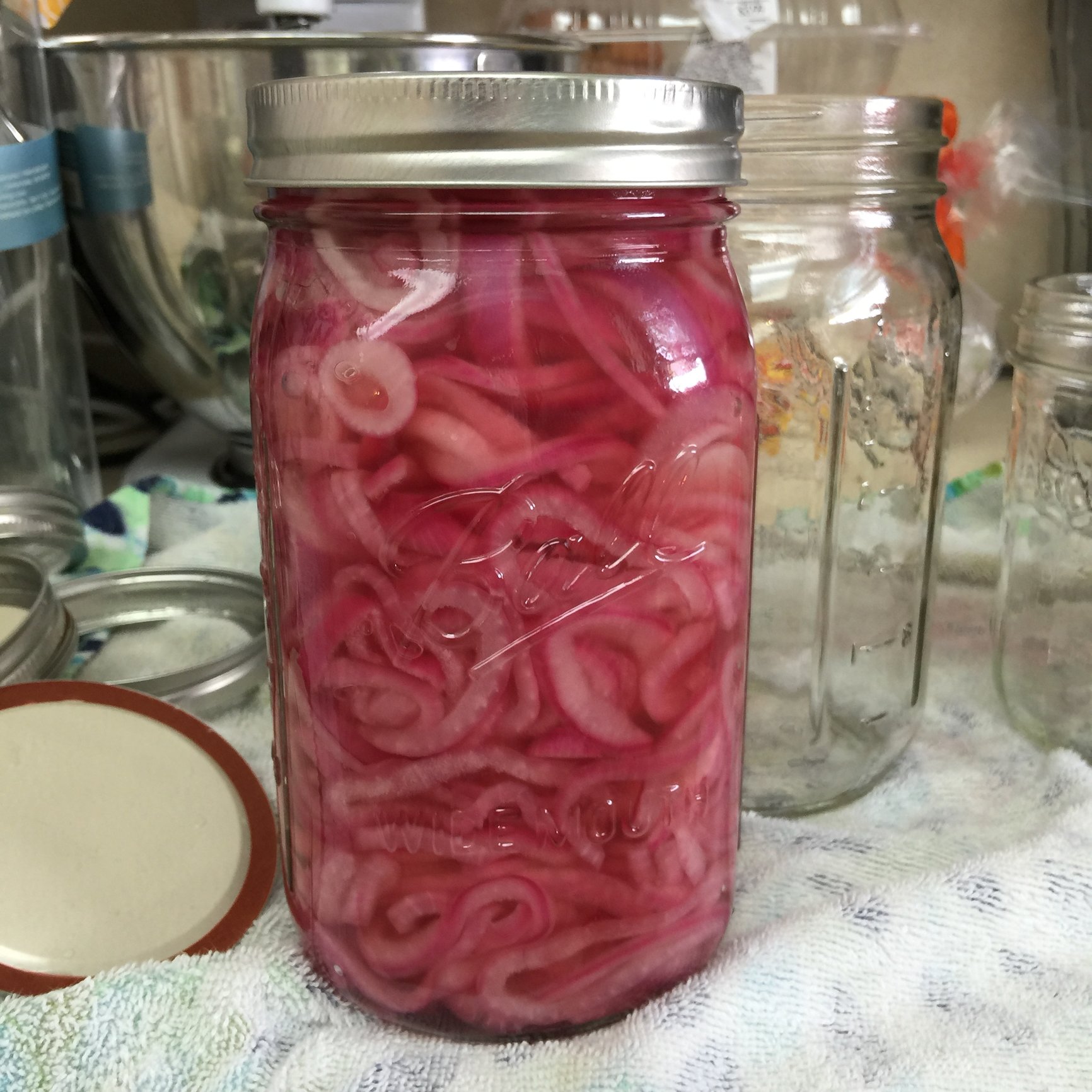 @blind99 gave me his pickled red onion recipe, made a batch to serve today, and had to put the rest in a mason jar for later enjoyment...