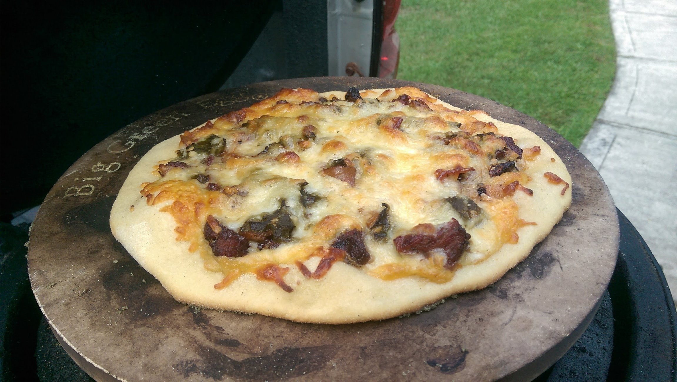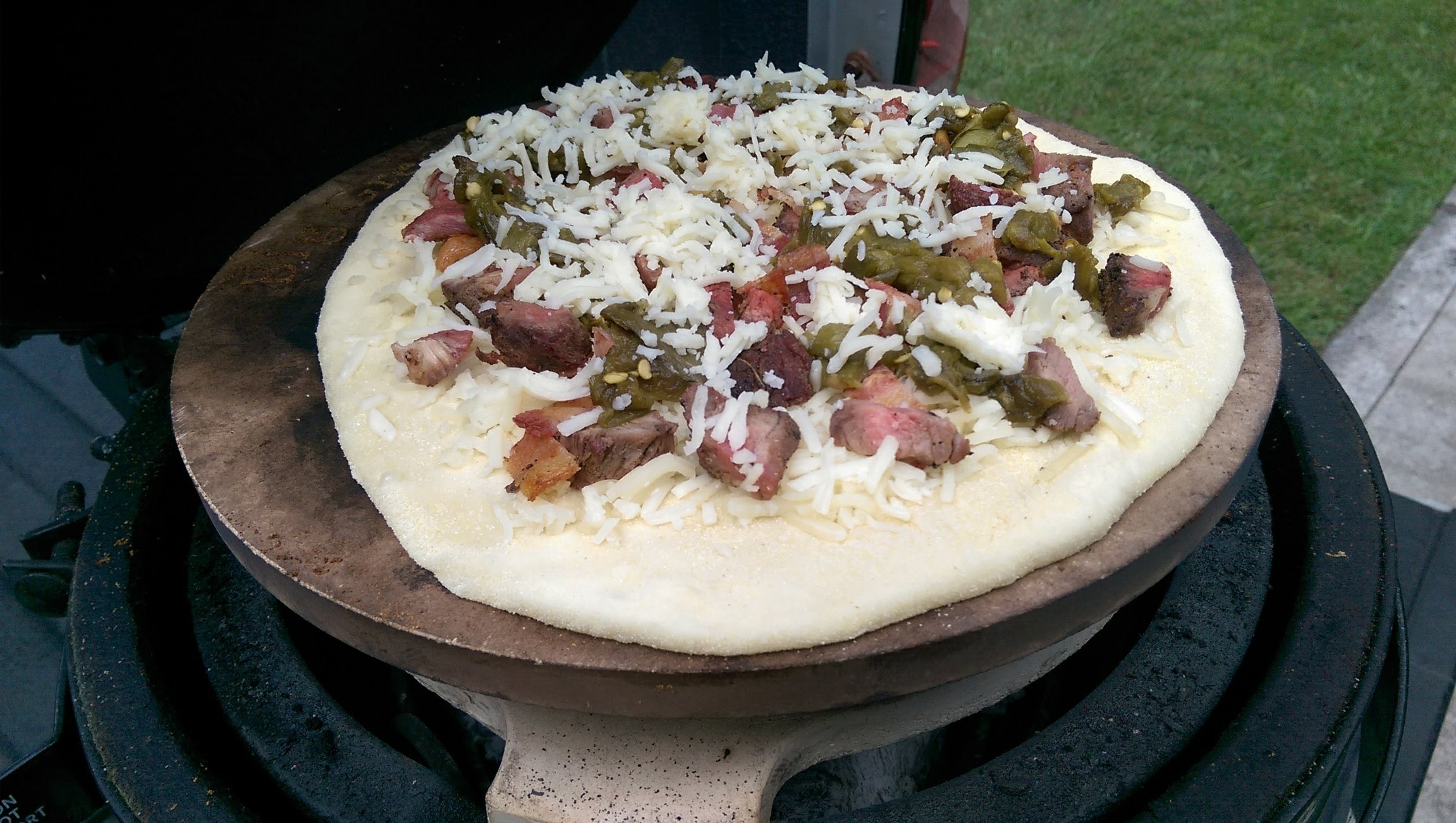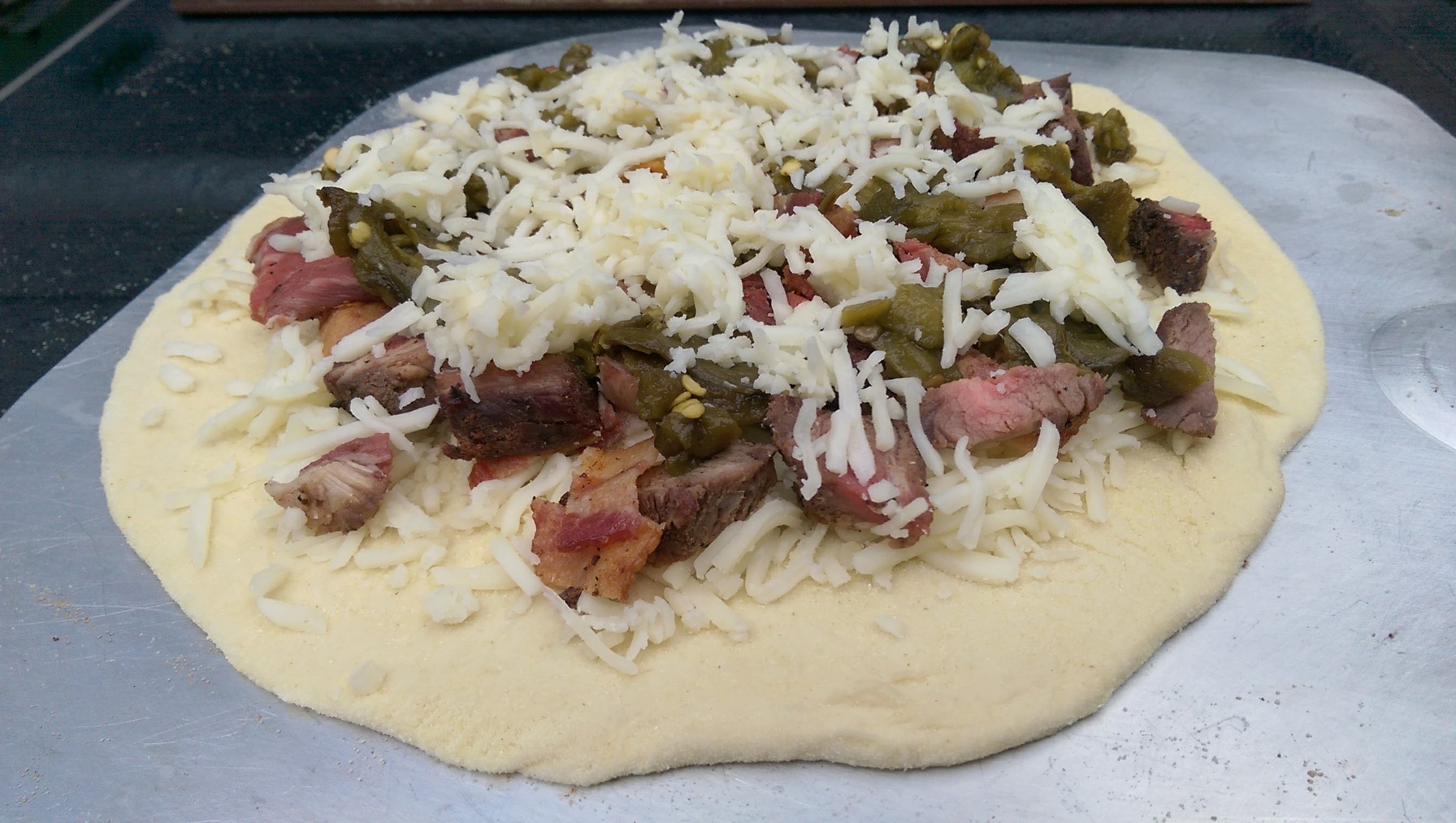 Next 600℉ with spinalis dorsi, bacon, roasted hatch chile and blend of cheese.  Good but, could've been better.