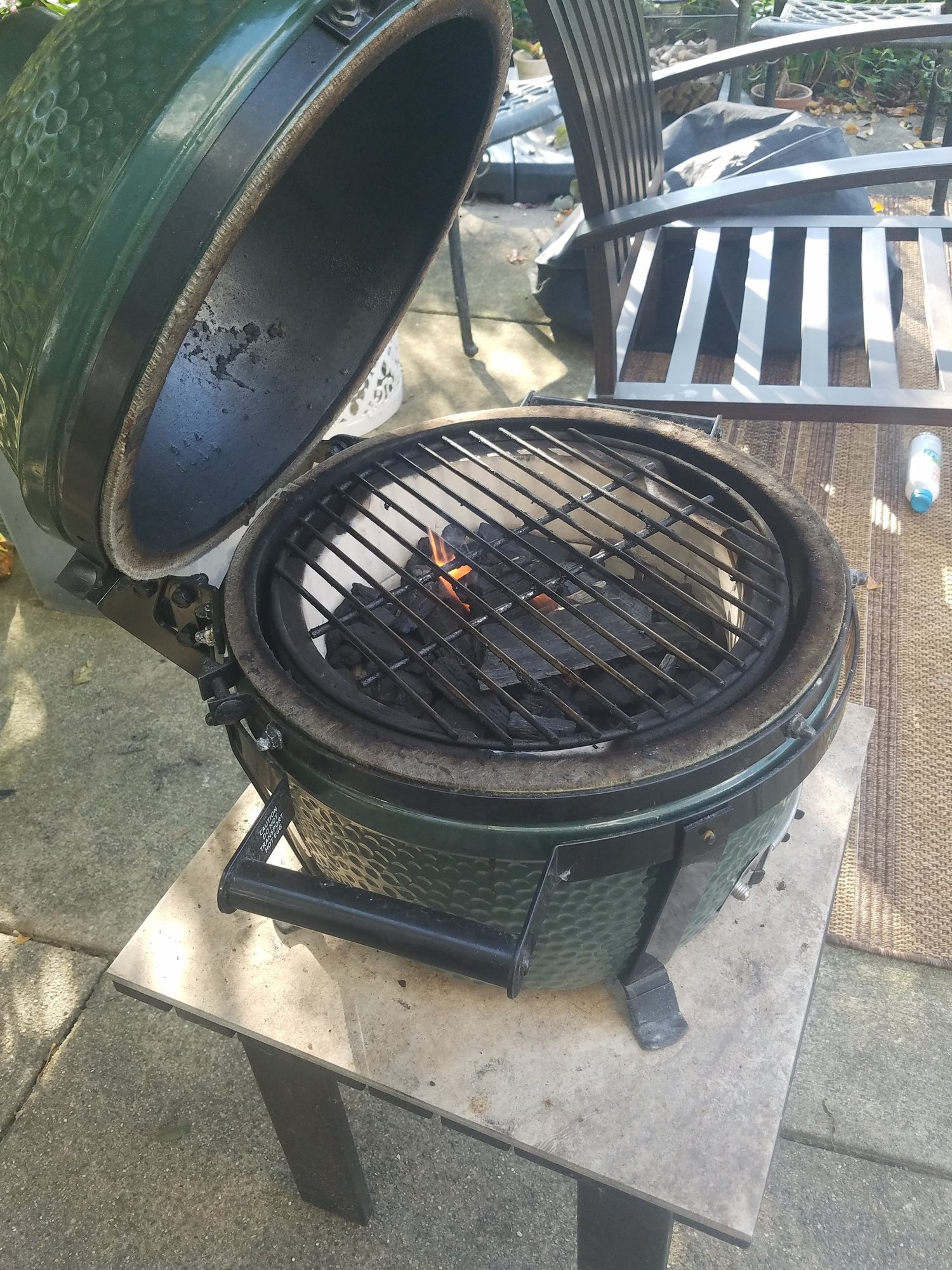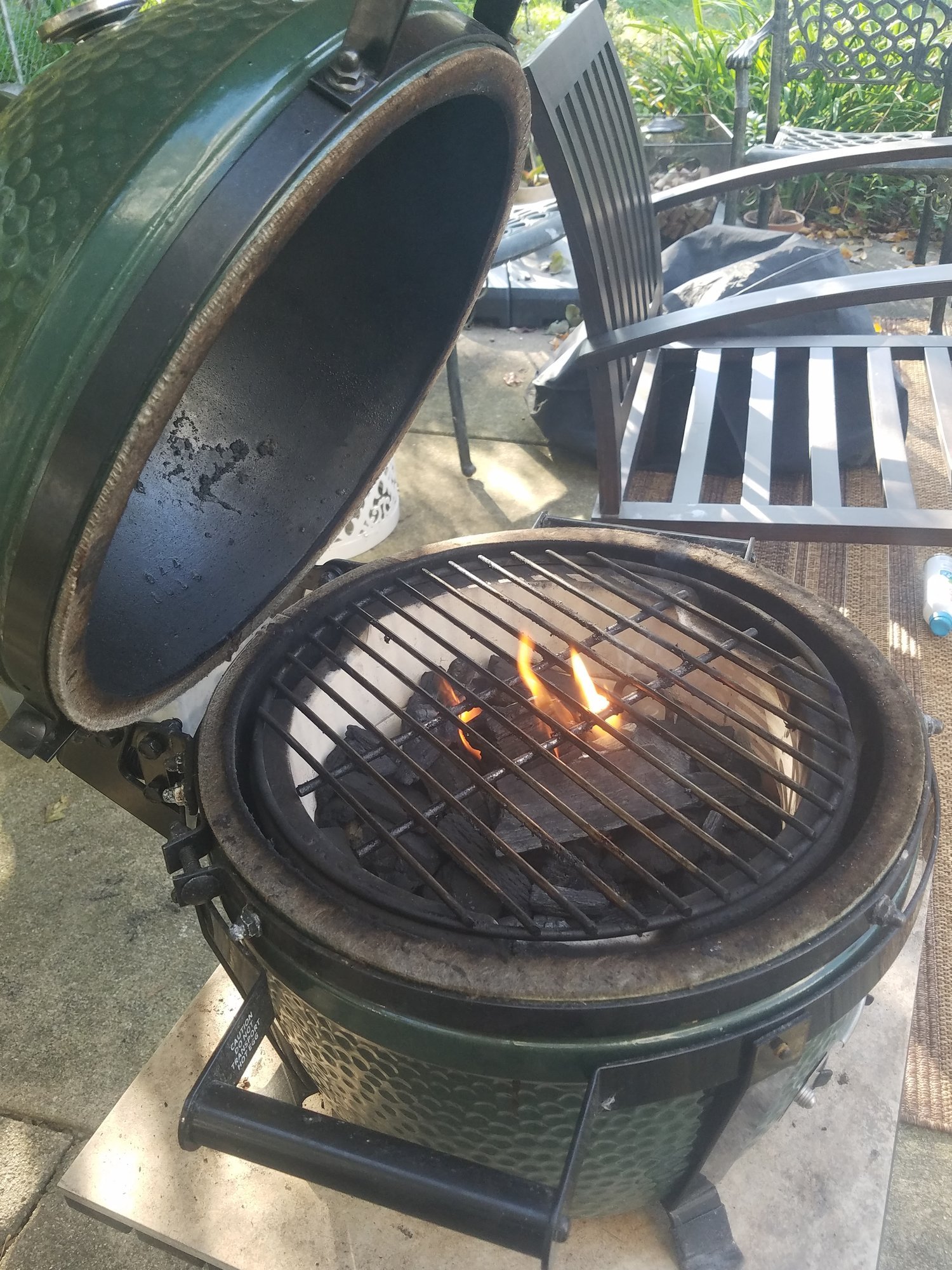 Allowing the flames to clean the grid, prior to the smoking wood and plate setter. I do not have the mobile cleaning unit @theyolksonyou is fortunate to have (dog), some folks have all the toys. "Knowledge is Good" - Emil Faber