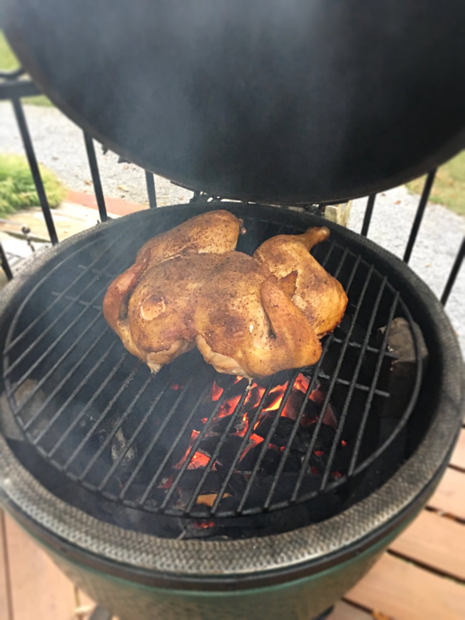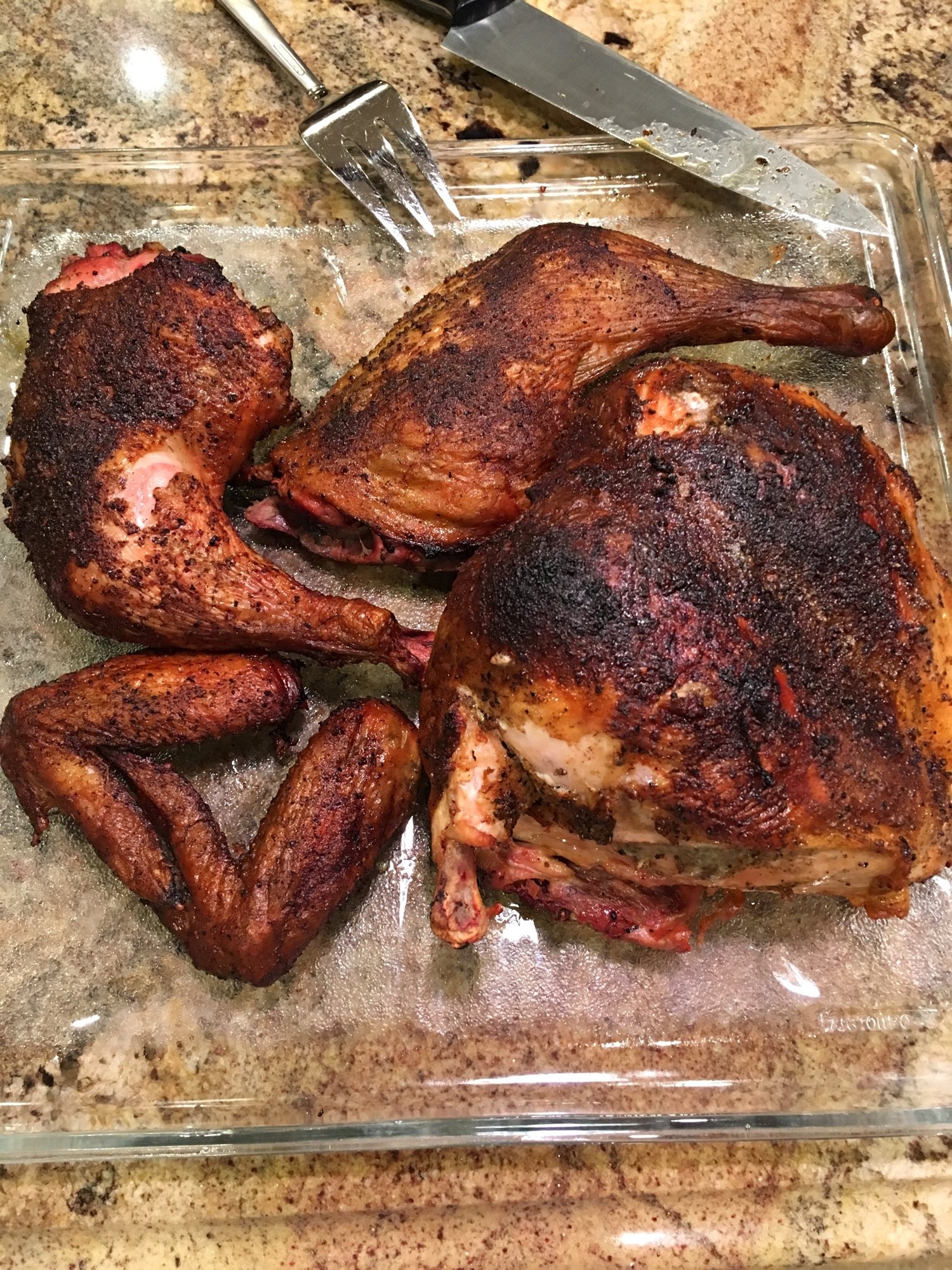Yep,  @little Steven  it was oriented that way as that is how I cook it because it is usually hotter toward the back of the egg. But the temp difference of this bird was abnormally large this time. Just strange.  So I rotated it 180 degrees and flipped it.  Legs were done, so parted it out on the grill. Boobs took 10 mins more than the legs.