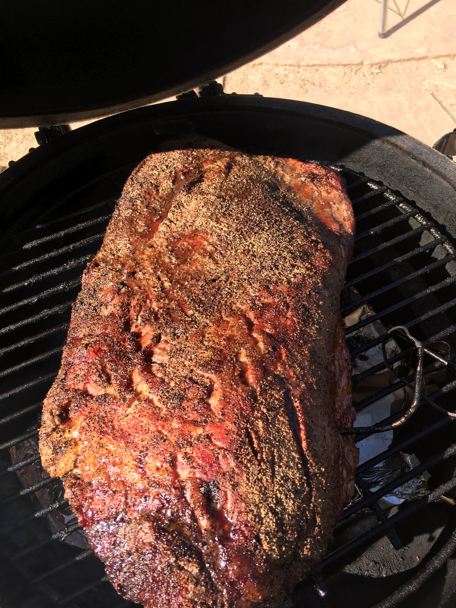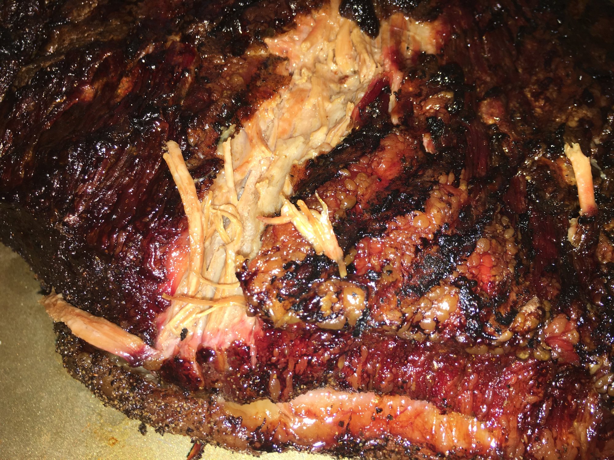 Right off the EGG. Forgot to take the point off early, so I will do so in a bit to make some burnt ends tomorrow.