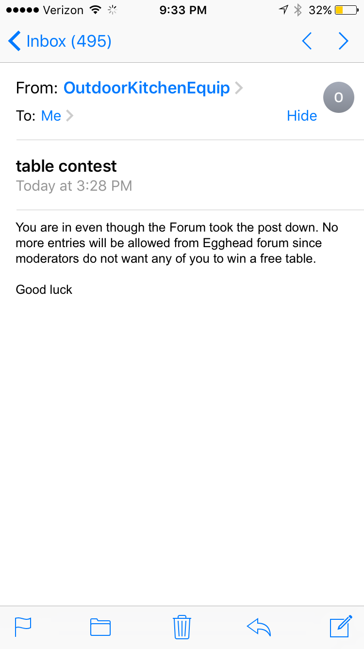 What's happening right now is a colloquial, global quit the ****!  We all own, enjoy and post our cooks on our Kamados. I'll happily go get a red one, because everyone knows they're just as good, and post amazing cooks there.  If the Buffalo finds it necessary to delete a friendly thread posted by one our most amazing brethren providing legitimate information on a table giveaway, I'm with Blake.  That's a crock of ****.  Will not support that failure of support.
