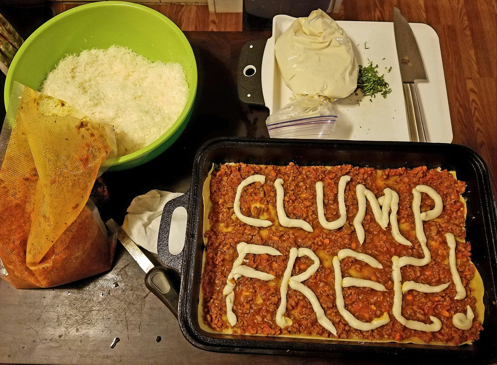 Haha, nice spread. Keep working on that cheese blend - go to the youtubes if needed.THANK YOU FOR YOUR ATTENTION TO THIS MATTER