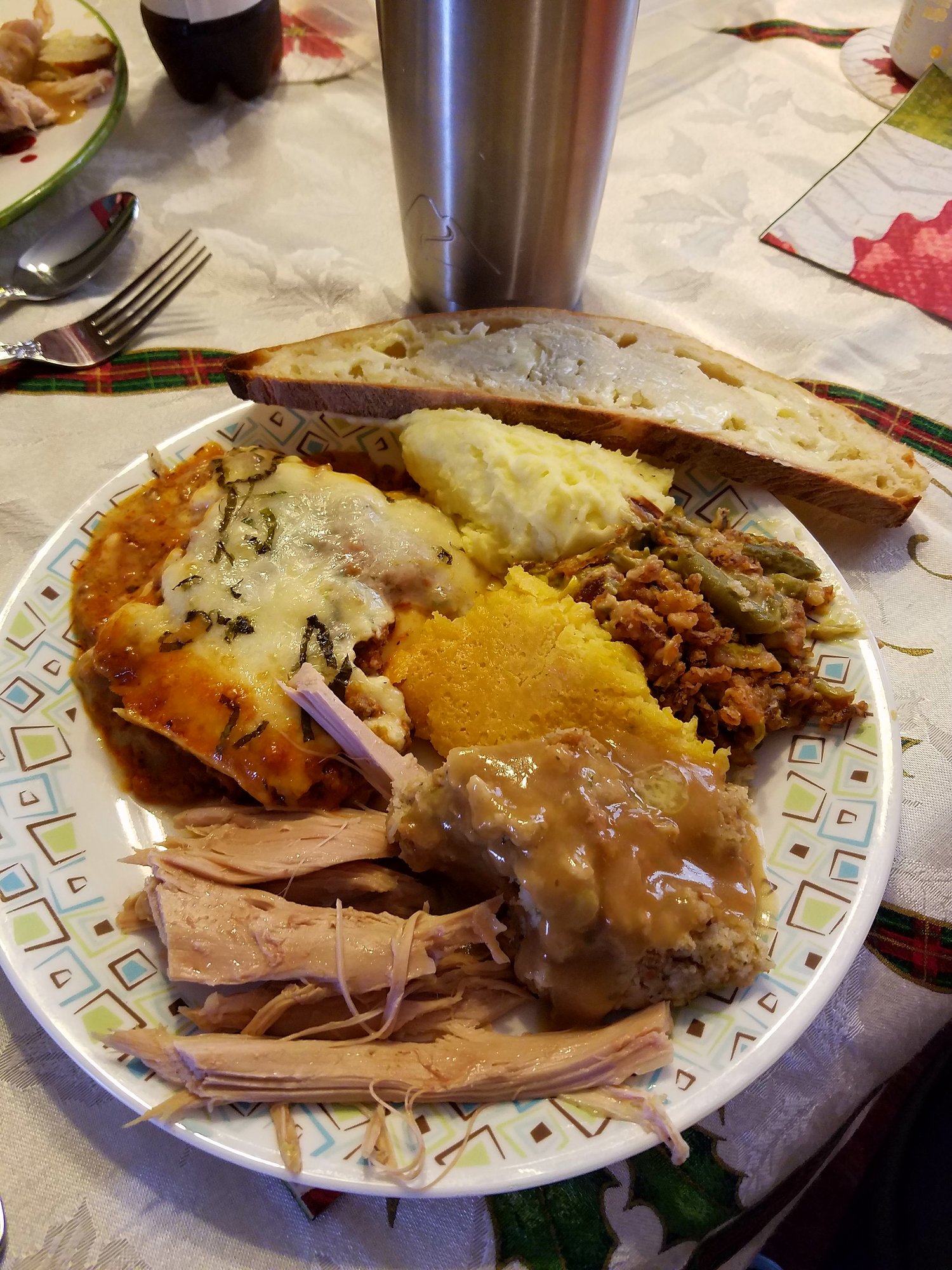 "The green bean casserole tastes like it was done 30 min ago."