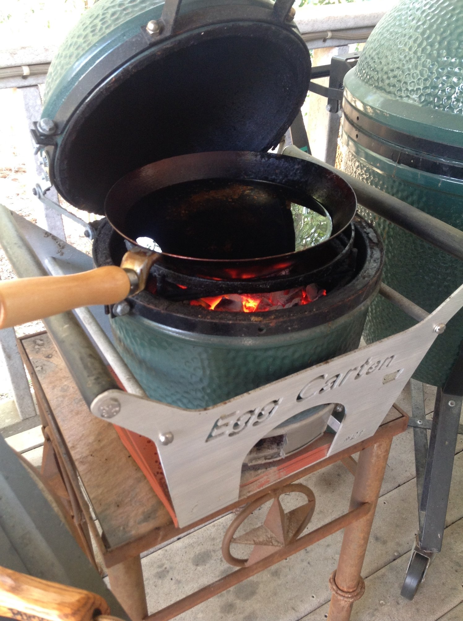 A 9" Lodge, and a Mini Wok from Ms ChanSalado TX & 30A FL: Egg Family: 3 Large and a very well used Mini, added a Mini Max when they came out (I'm good for now). Just given a Mini to add to the herd.