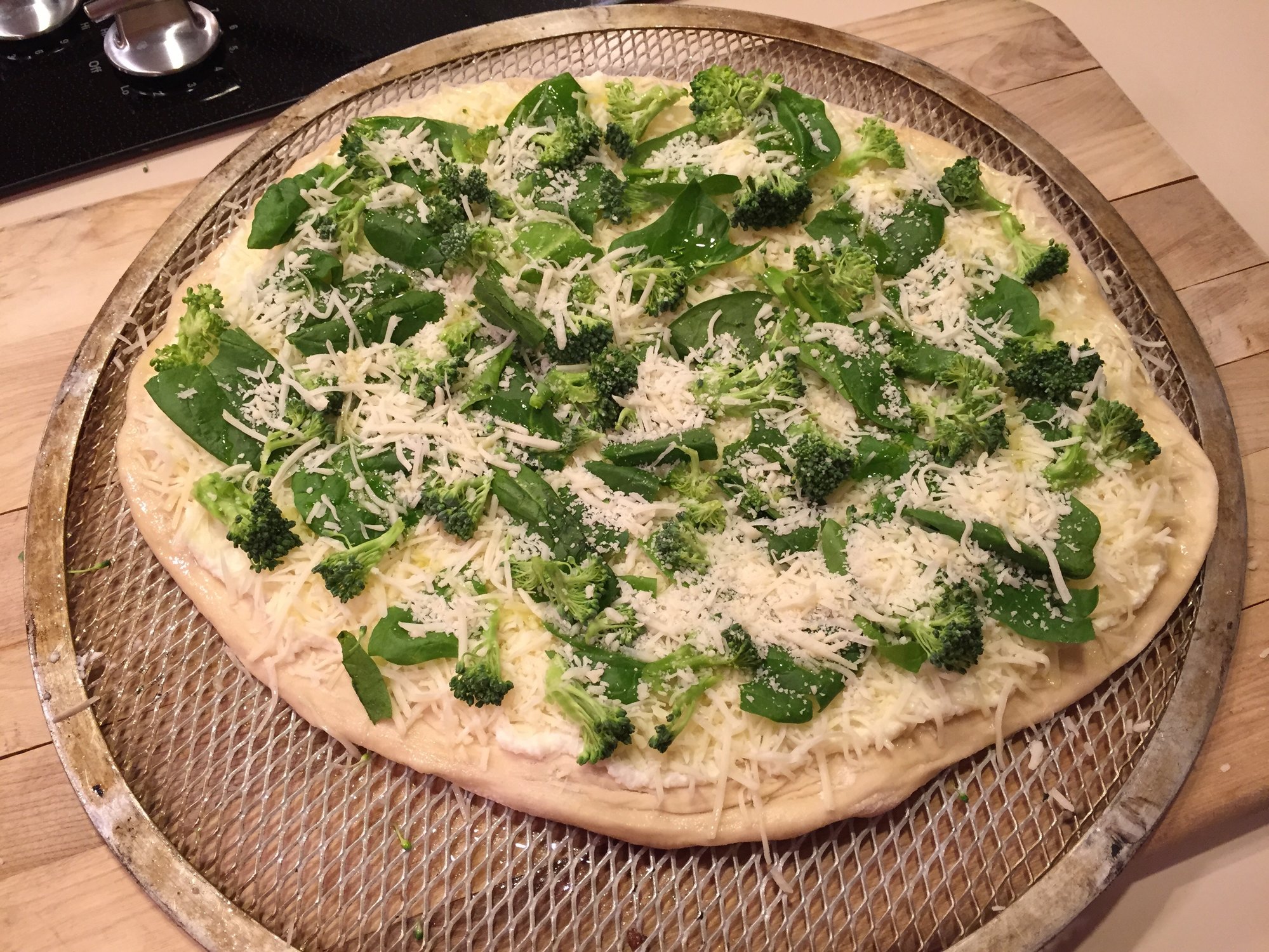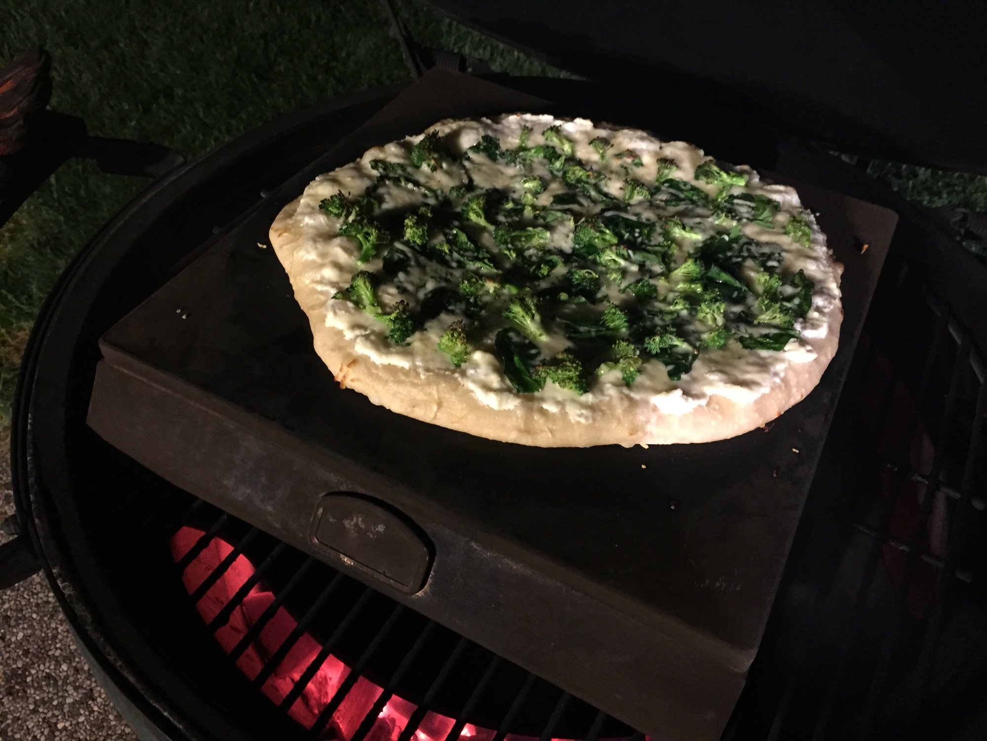 /dough punched, rolled, tossed and spun then topped with ricotta, mozzarella, Provalone, parmesan and spinach and broccoli Charlotte, Michigan XL BGE