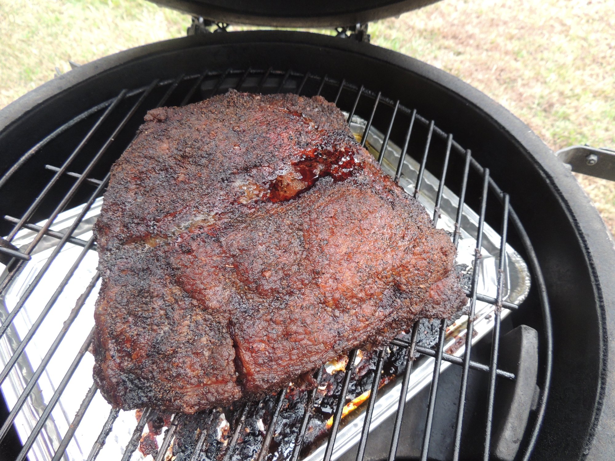 Local Costco has had Prime Packer Briskets lately, which is fantastic.  So I fired up the egg at 0345 this morning and had this on by 0430.