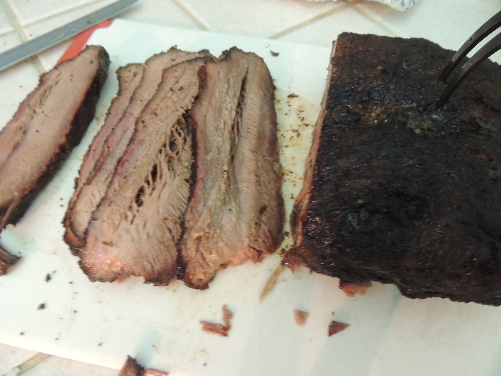Probing wonderfully and going to the FTC.  9 hrs and avg. temp of around 190.  I had to sneak a little tasting slice of the corner, yummy.