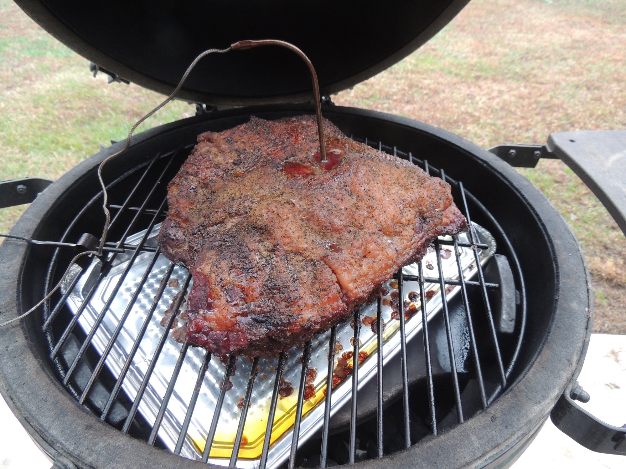 About 3.5 hrs. in, dome is at 285, but Maverick is at 235.  Calibrated the dome thermometer in boiling water last night and it's fine.  Going to just run with it like it is.  More to come later.