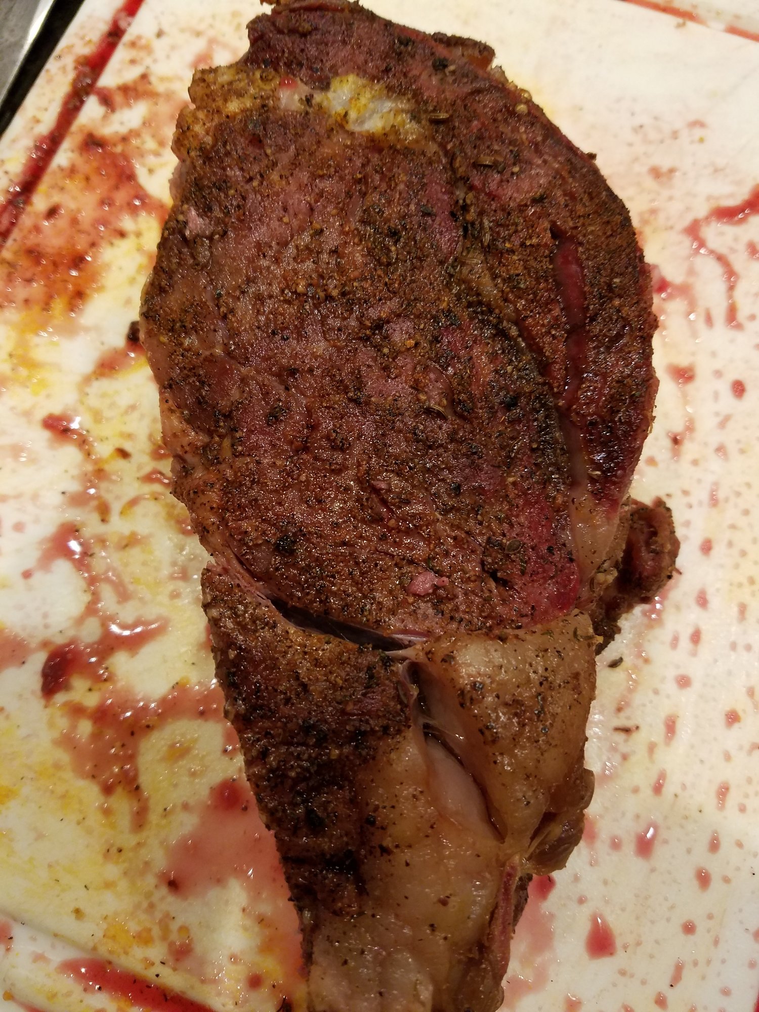 That is one beautiful prime rib! Congratulations on a job well done.