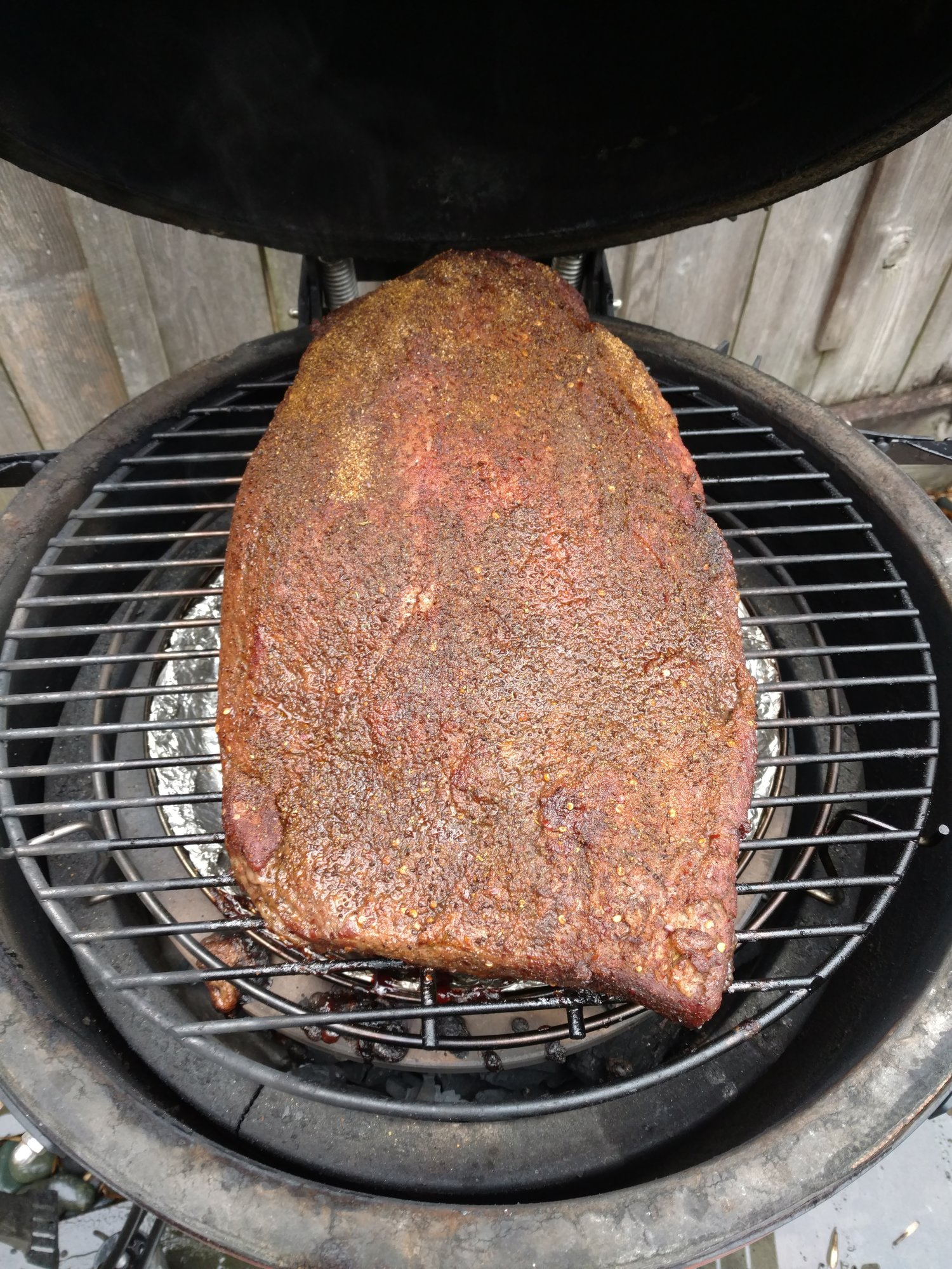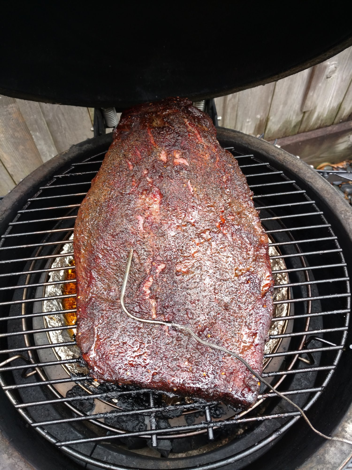 This will also keep anyone from reading the briskest's mind. Tinfoil is so useful.Photo Egg said:Now cooking in the rain at my brother's. He has a KJ classic and a BGE Mini but no Smokeware cap. Not windy so the foil is working OK for now.